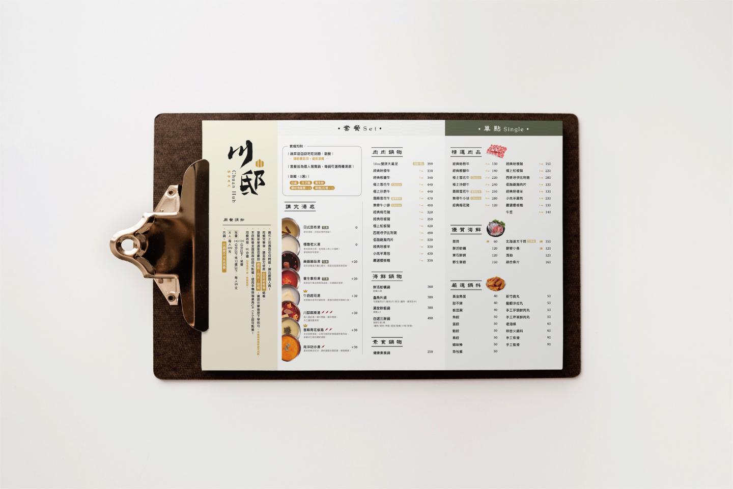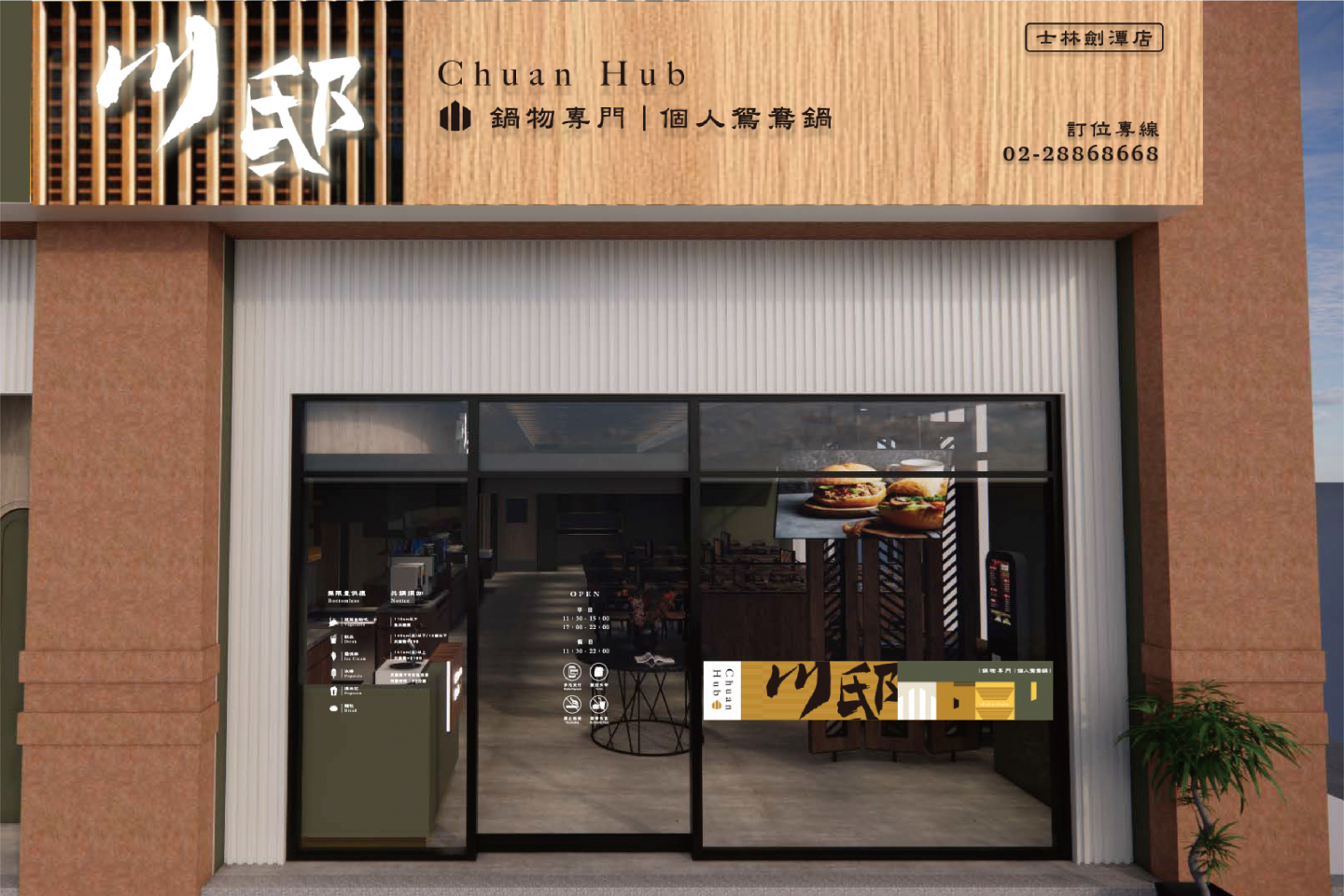2021有著穩紮穩打鍋物餐飲經歷的業主, 此次將火鍋店結合手搖飲料店,開創擁有獨特風格的自有品牌, LOGO中文標準字設計上以厚實且揮毫的書法手寫字體呈現,就如同湯底在鍋中沸騰流動, 「川」字結合「邸」高樓中心的意象,設計出LOGO圖像, 強化品牌穩重厚實的定位,溫暖色塊的方式帶入設計,增添家的溫度一傳達宅邸溫食、暖心