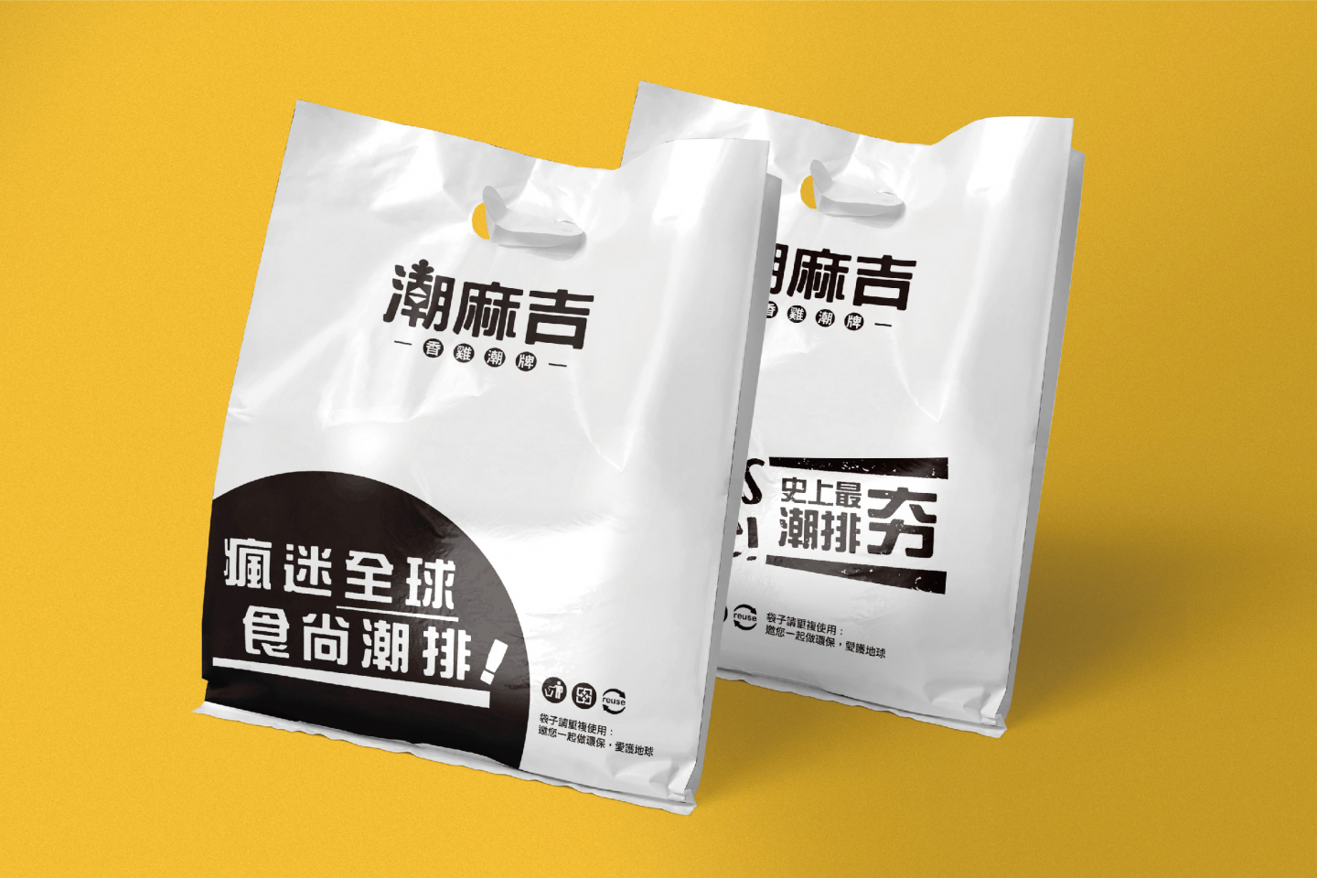 店卡、杯材、提袋皆以簡單大方的黑白為主, 並加上黃、紅色點綴,看似簡約的視覺, 其實藏了許多令人愉悅的小細節!