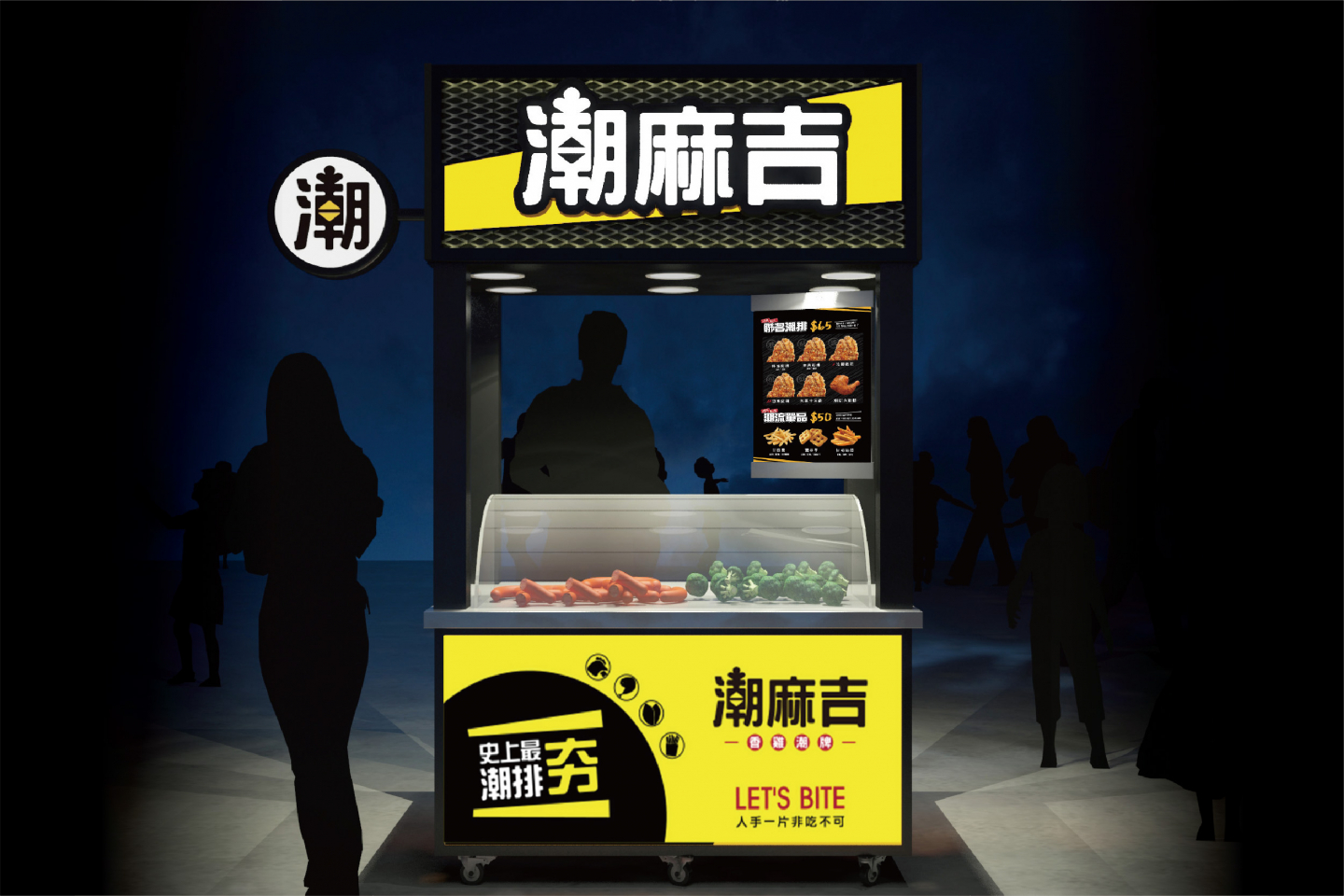 餐車設計以黑色鐵件組成,並搭配亮眼黃色, 具張力的色塊與字體,展現出街頭潮流的形象, 就希望你知道,買雞排也很以很『潮』!