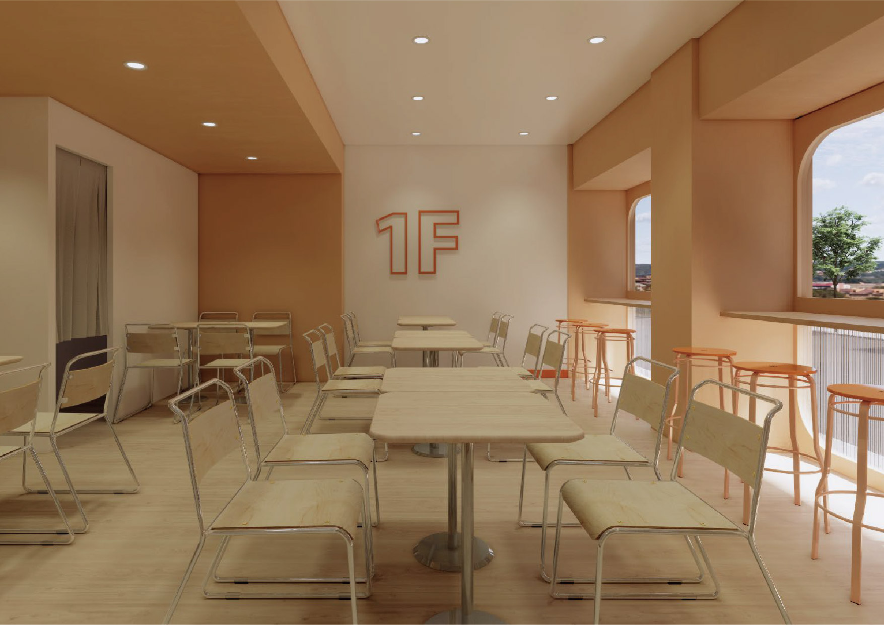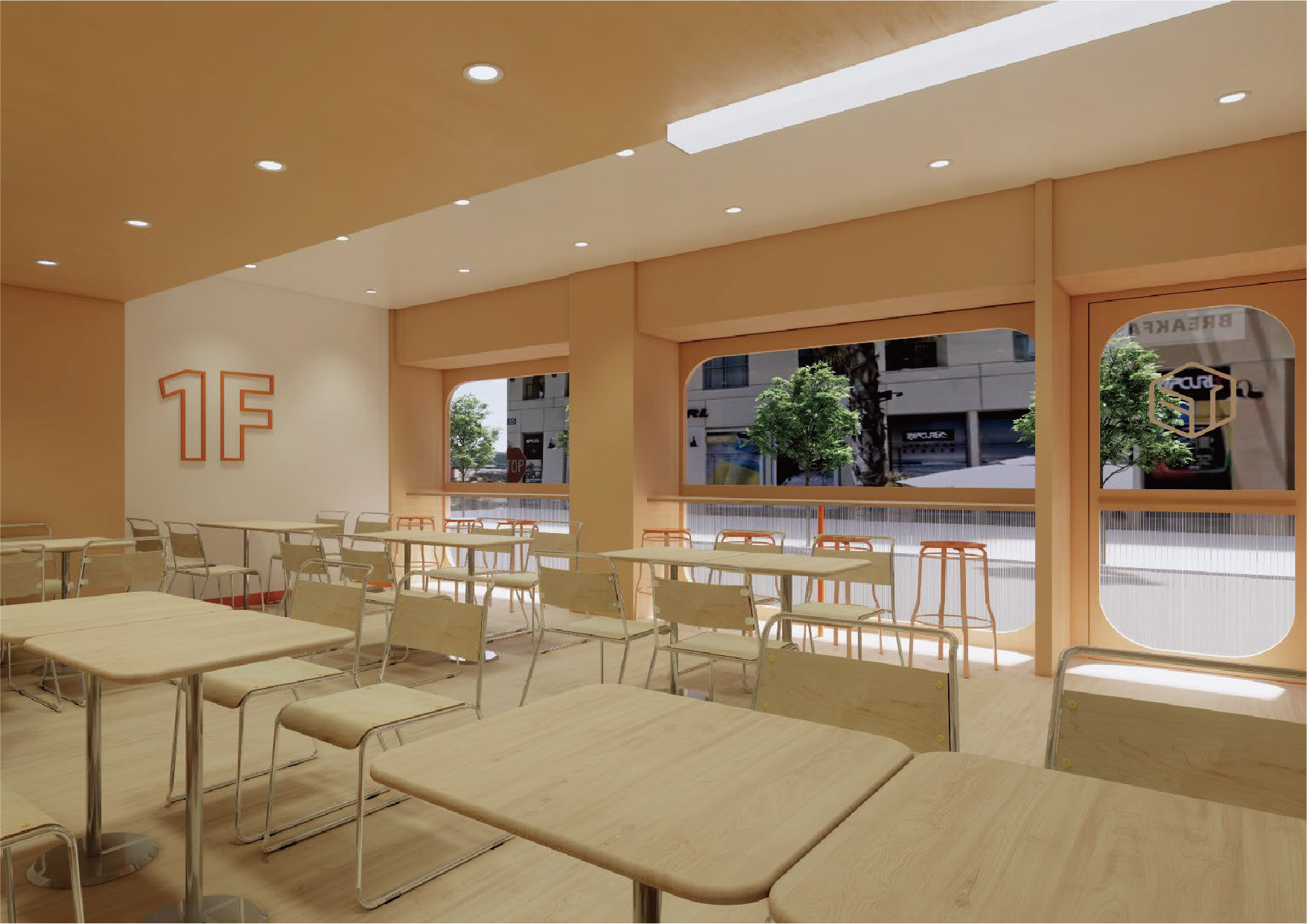 Logo以立方體代表空間感,象徵樓層的意向;1F的加入,將簡約設計中增添了一點透視感與趣味性。