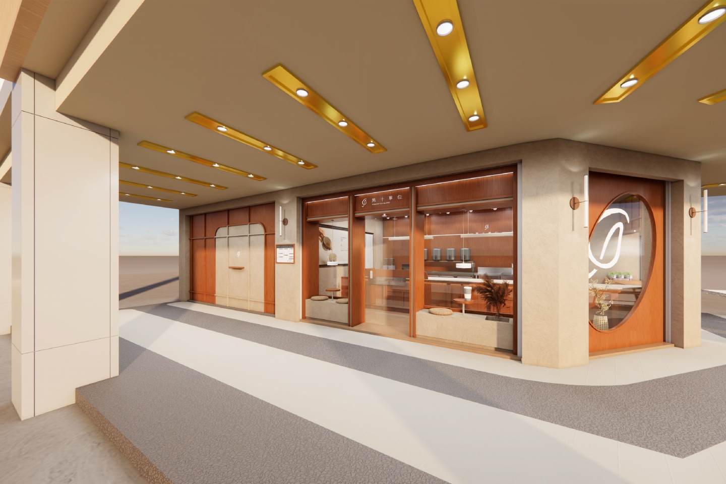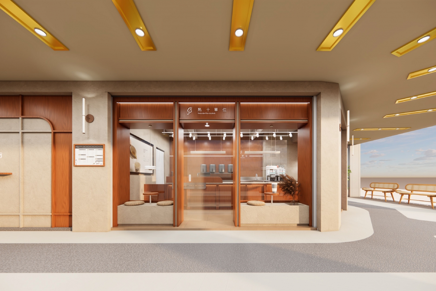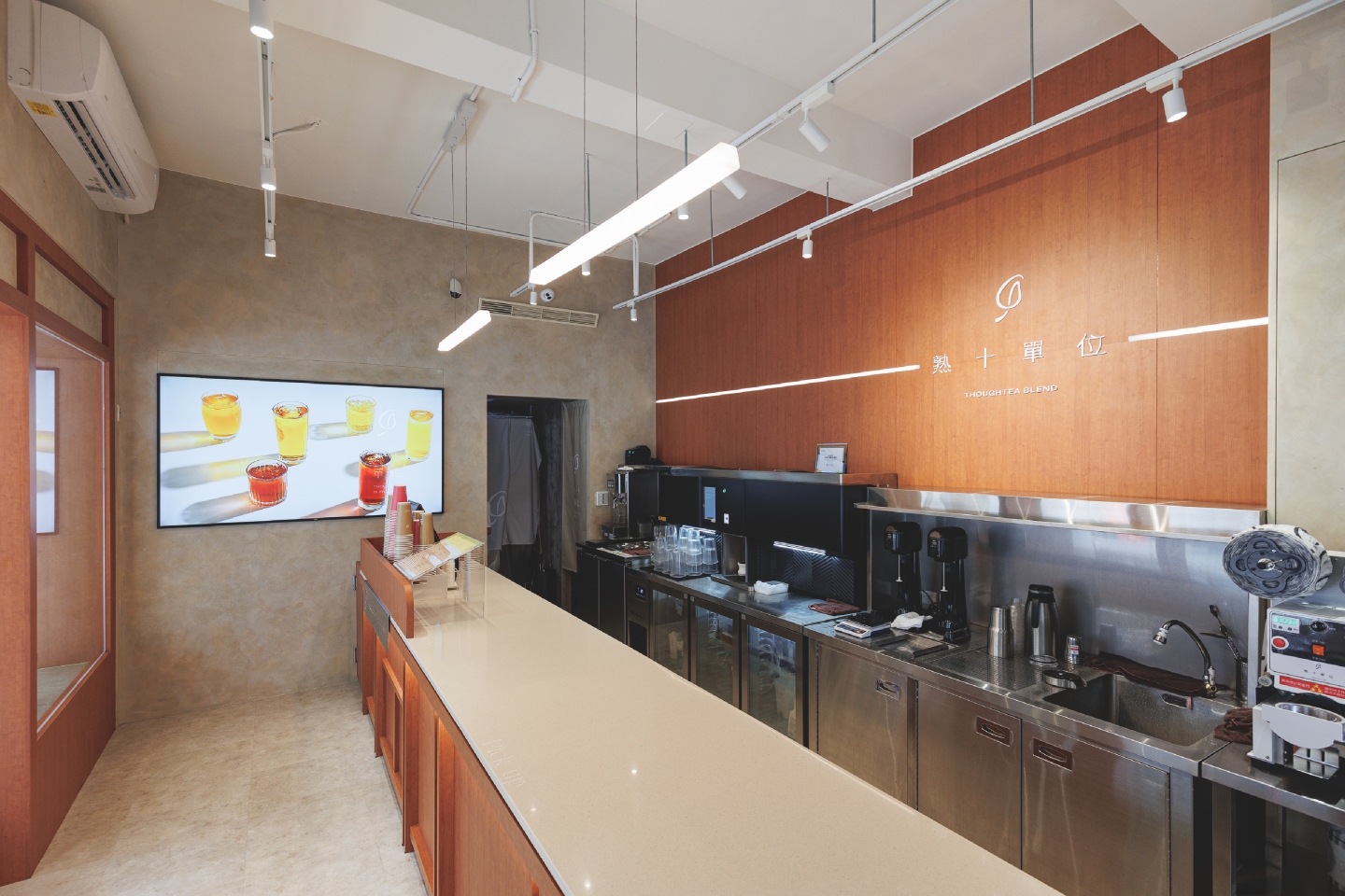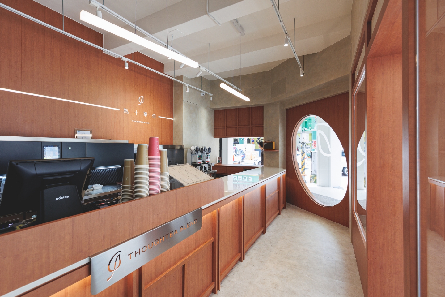 以暖色調與木質為底蘊應用於空間設計中,溫暖的木紋與簡約線條相互交織,並採用大面玻璃設計,使自然光得以充分灑落,營造出溫潤明亮且和諧的空間氛圍;內部陳設亦講求極簡主義,不過多綴飾,讓人們能夠專注於品茗茶飲純粹的美好。