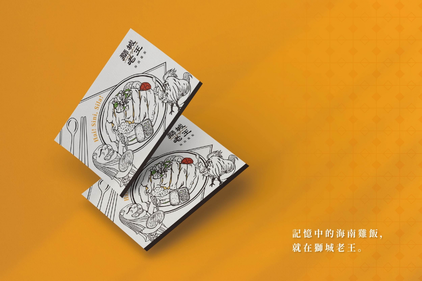 在LOGO設計上 以拿著湯匙準備開動的公雞作為主角,彰顯海南雞飯的招牌特色 公雞的雞冠經過巧妙設計,宛如獅子的雄偉鬃毛 象徵新加坡「獅城」的特色形象 公雞手持湯匙,垂涎三尺的模樣更添趣味 傳遞出對美食的無法抗拒。 而文字設計則在末端融入了獅子鬃毛的律動感 與公雞羽毛的垂翹姿態,呈現品牌的細膩巧思