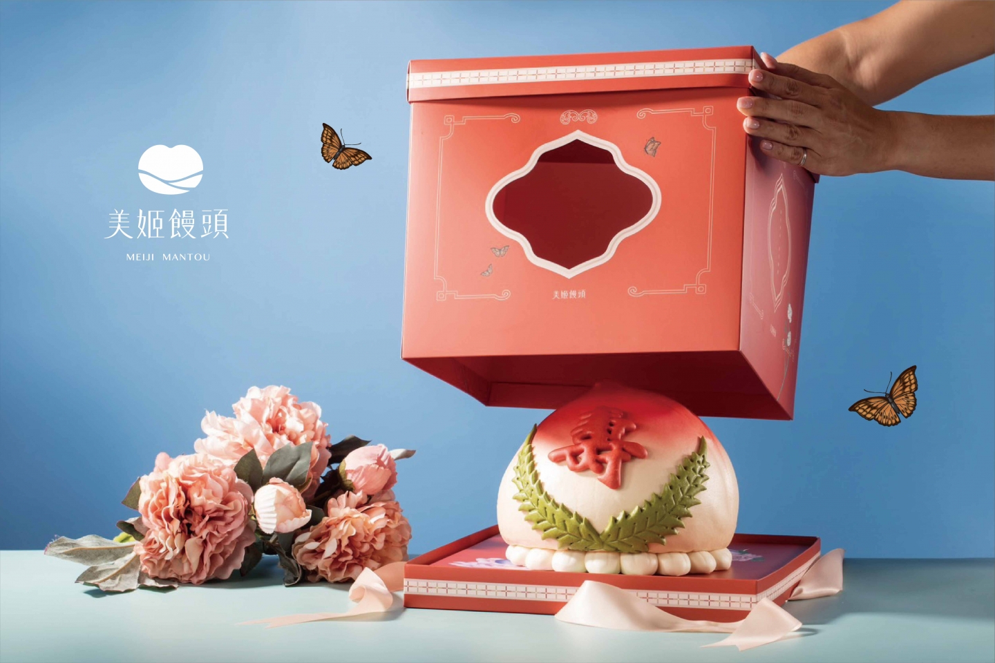 2025美姬饅頭以東方傳統祝壽文化,打造出獨具匠 心的大壽桃禮盒 設計靈感源自對長壽、幸福與美好寓意的傳遞 讓每一份禮盒都不僅是心意,更是一份祝福