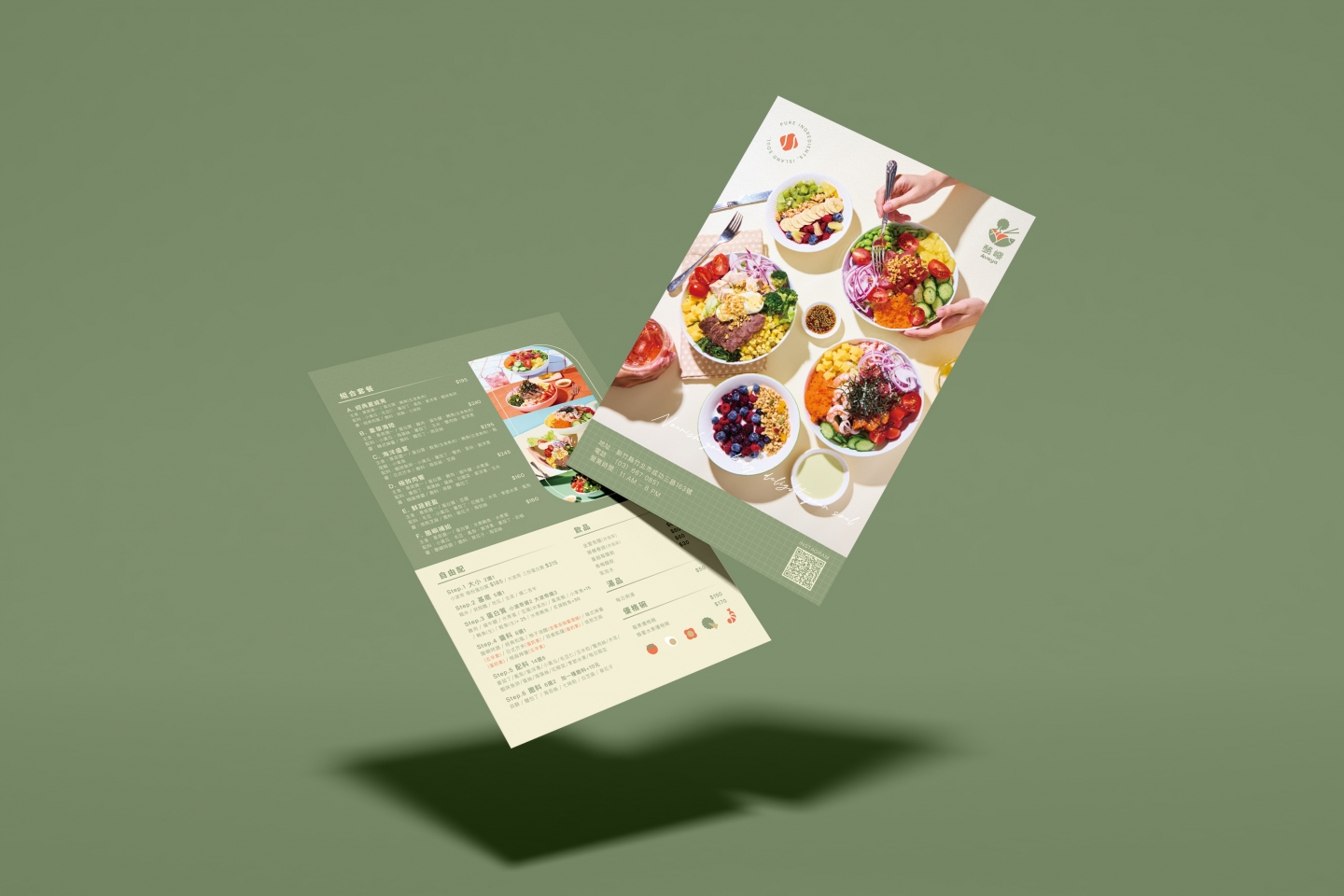 輔助圖型應用上,我們將 蔬果、魚塊、花椰菜等食材 抽象化為幾何化小圖形,營造輕快有趣的視覺氛圍