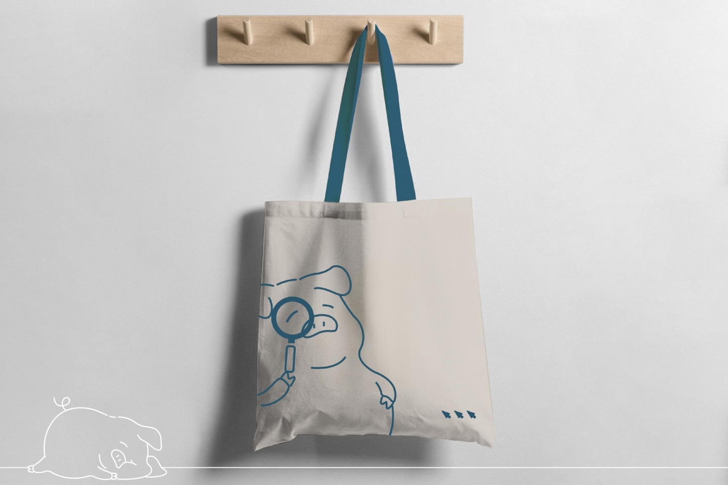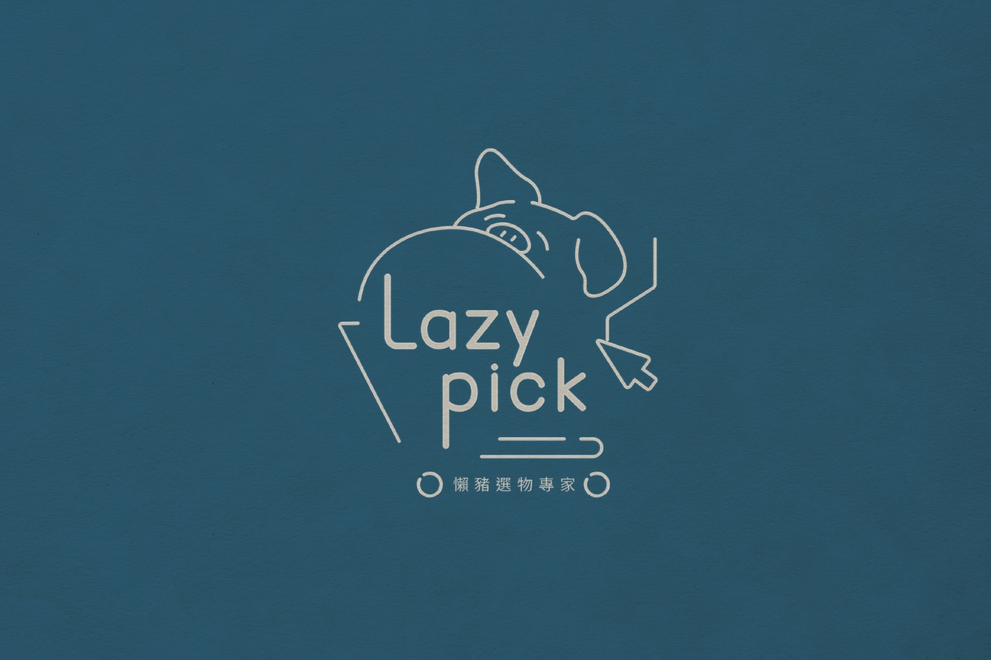 Logo 以一隻悠閒躺在購物車裡的小豬作為主角,搭配滑鼠游標圖像 象徵購物只需輕輕一點,即能擁有想要的生活好物 這個設計不僅展現出品牌的輕鬆氛圍 也傳遞出「懶得出門也能精選好物」的品牌精神。