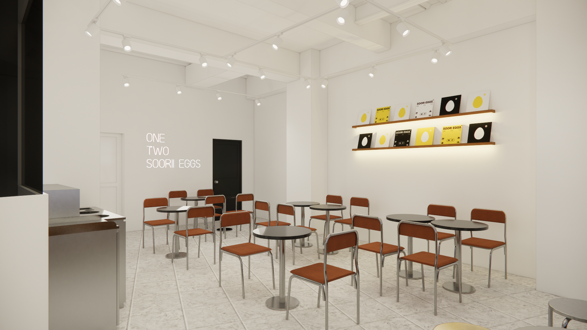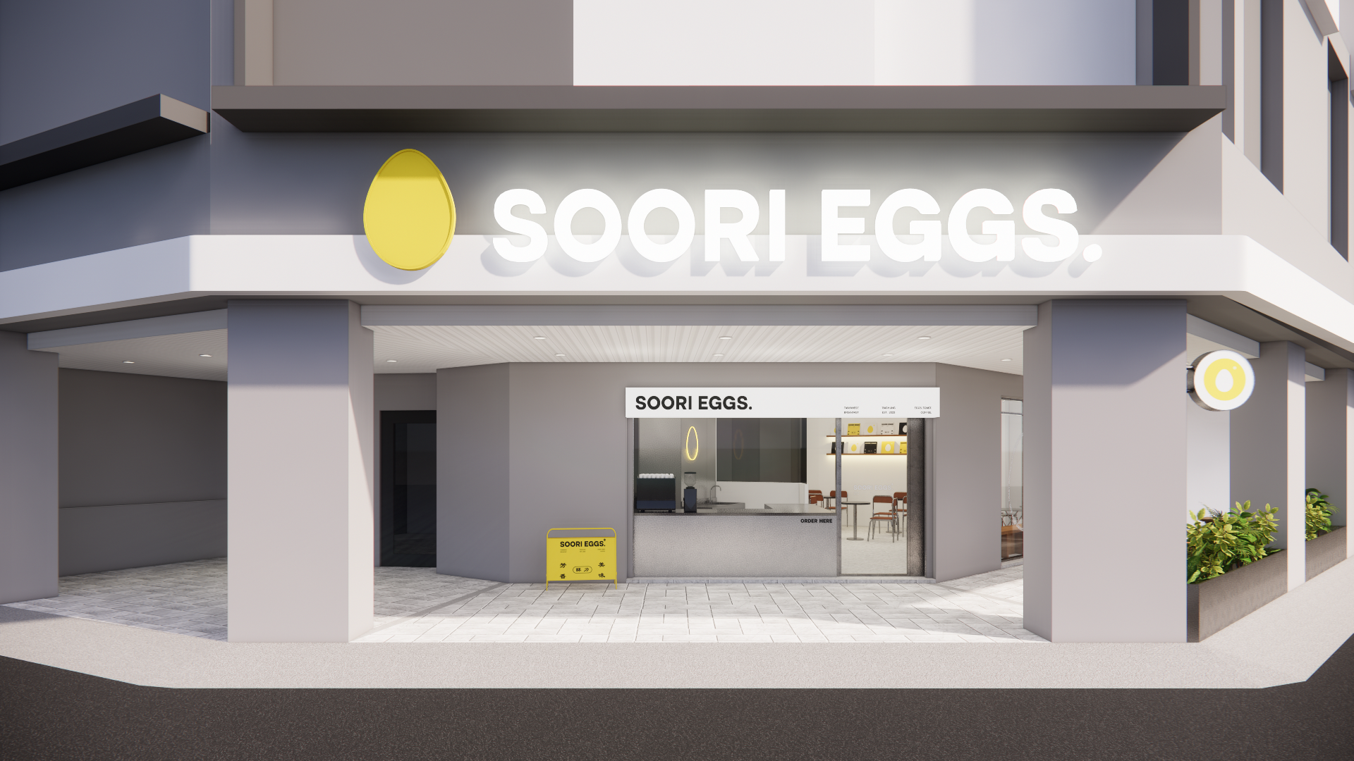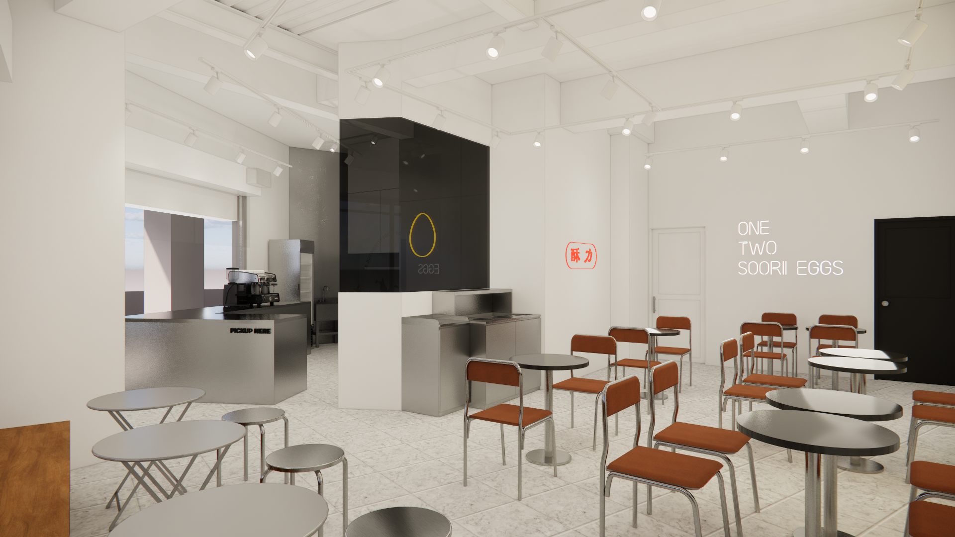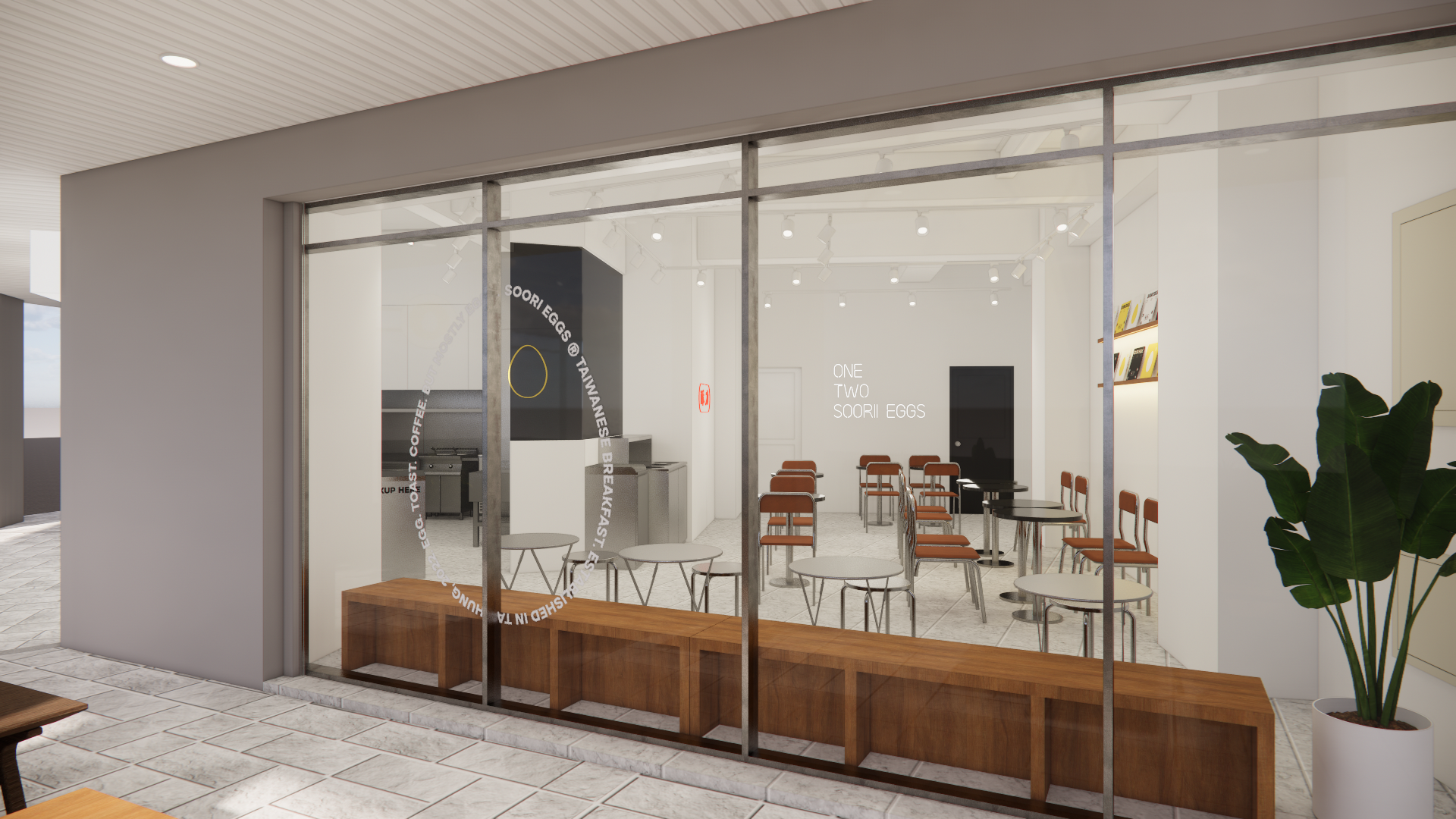 2025「酥力蛋餅 SOORI EGGS」不只是一間早餐店 更是一個致力於將台式傳統早餐重新定義的新潮品牌 設計概念: 晨光、純粹、動能 空間設計的核心圍繞著品牌靈魂元素——「蛋」與「晨間活力」 在繁忙的都市街角,創造一個如晨光般清透、如蛋白般純淨的載體 透過材質的對比與通透的格局,傳遞出快速、新鮮且充滿動能的品牌精神。 利用角間店面的優勢,大面積的純白色系與通透落地窗重塑街角印象 巨大的白色雨棚不僅提供遮蔽,更形成強烈的視覺張力 搭配標誌性的黃色蛋形招牌與立體字樣「SOORI EGGS」 在街道上形成無法忽視的視覺錨點,向城市發出最誘人的早餐邀請。