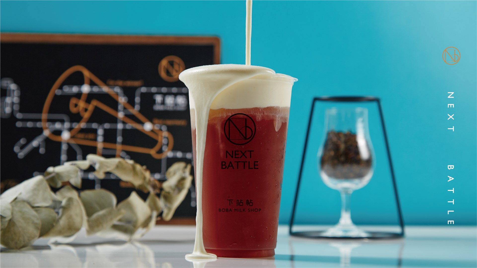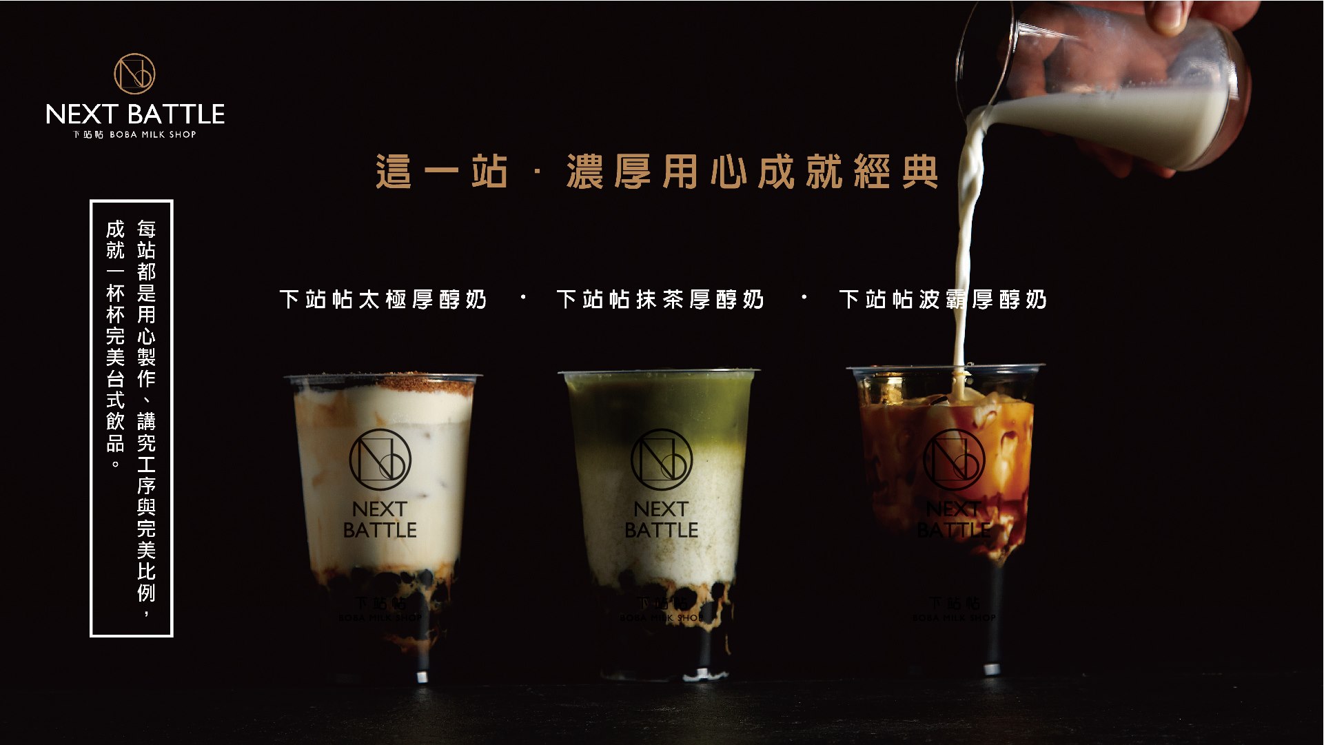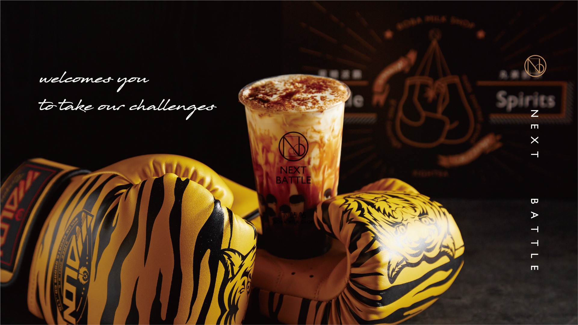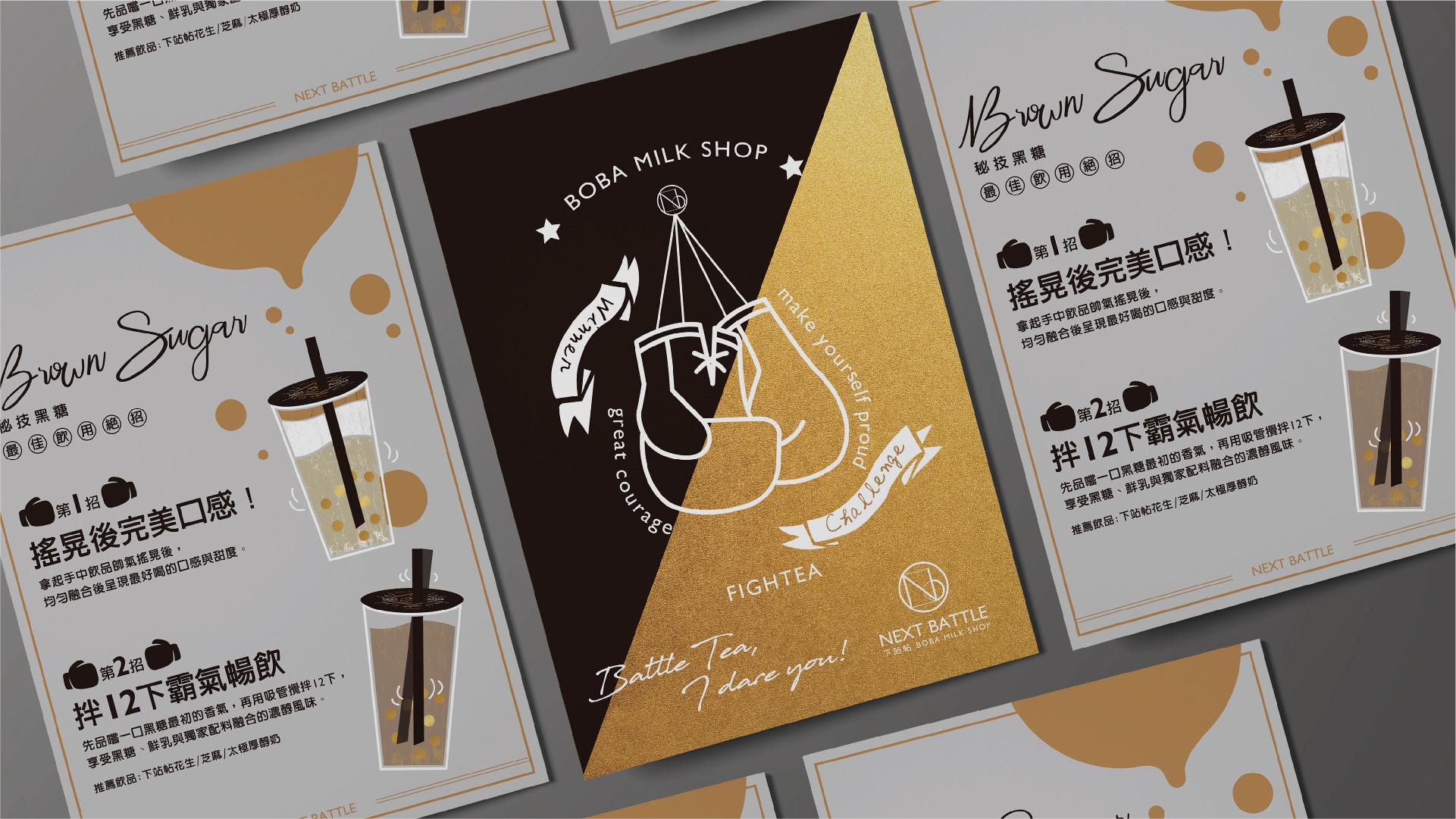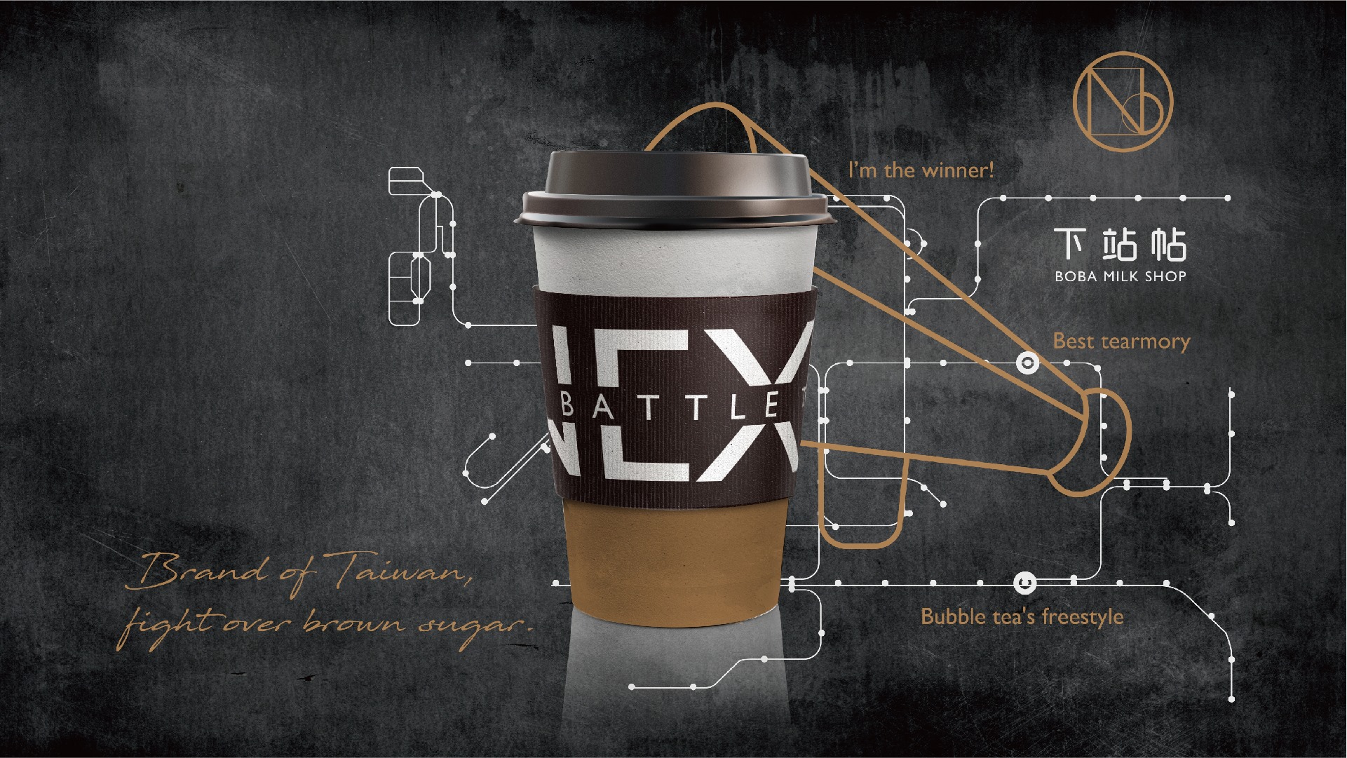當時我們接洽到新專案時,從最初的命名發想,就大膽以年輕、潮流為理念,同時結合諧音“下戰帖”的創意聯想,下站帖NextBattle黑糖珍珠鮮奶飲,就此誕生了!