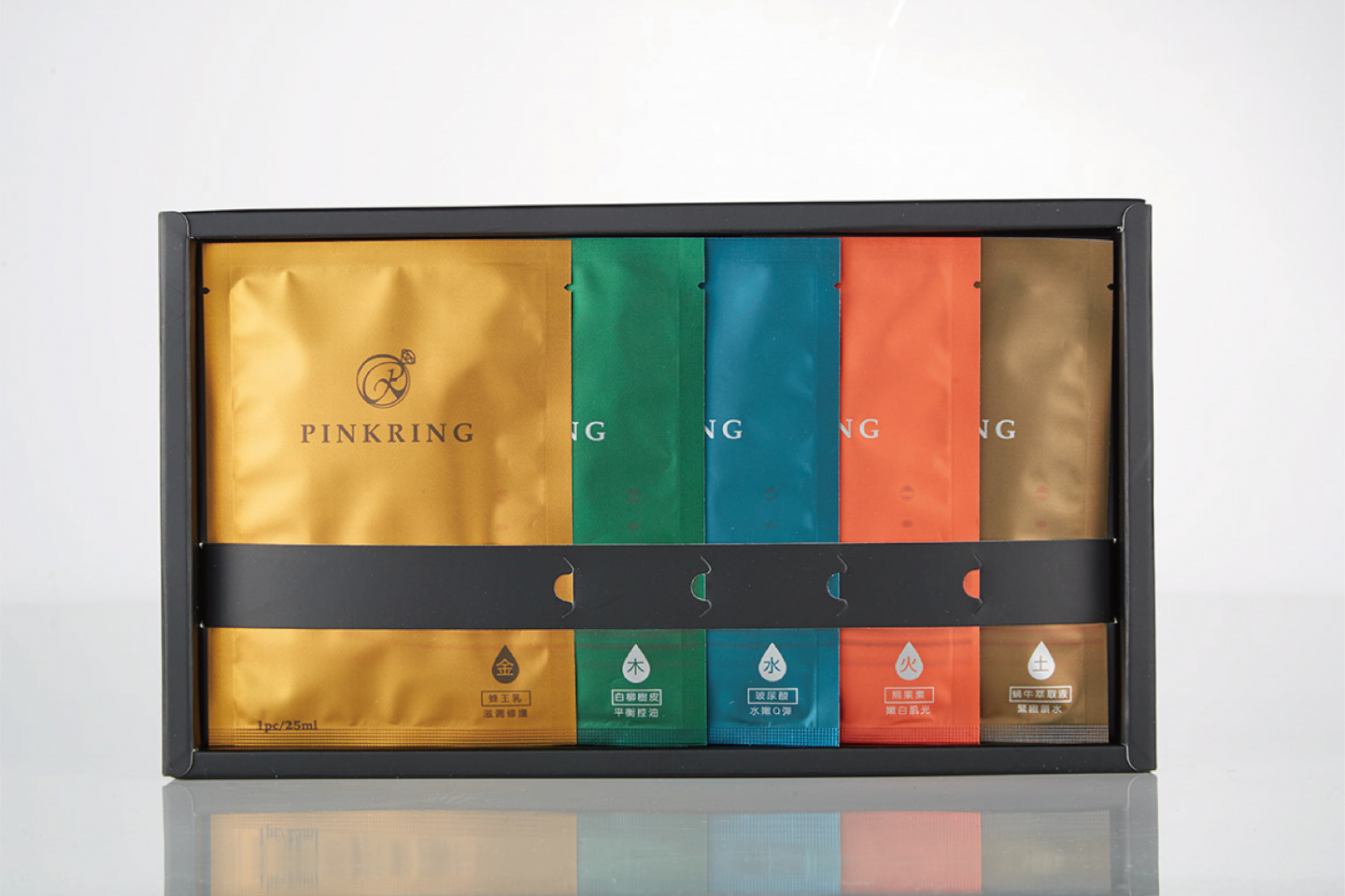 因應不同的商品,外包裝的設計增添了許多小巧思! 黑底搭配蜂蜜色,完美呈現蜂蜜的精華;白底搭配金色線條勾勒出的細緻花卉,刷上淡淡的色彩,優雅而大方;禮盒外盒以黑、粉、白三色的搭配帶著些許復古感,內包裝則採用高飽和度的五行代表色,呈現商品用料嚴實精神!