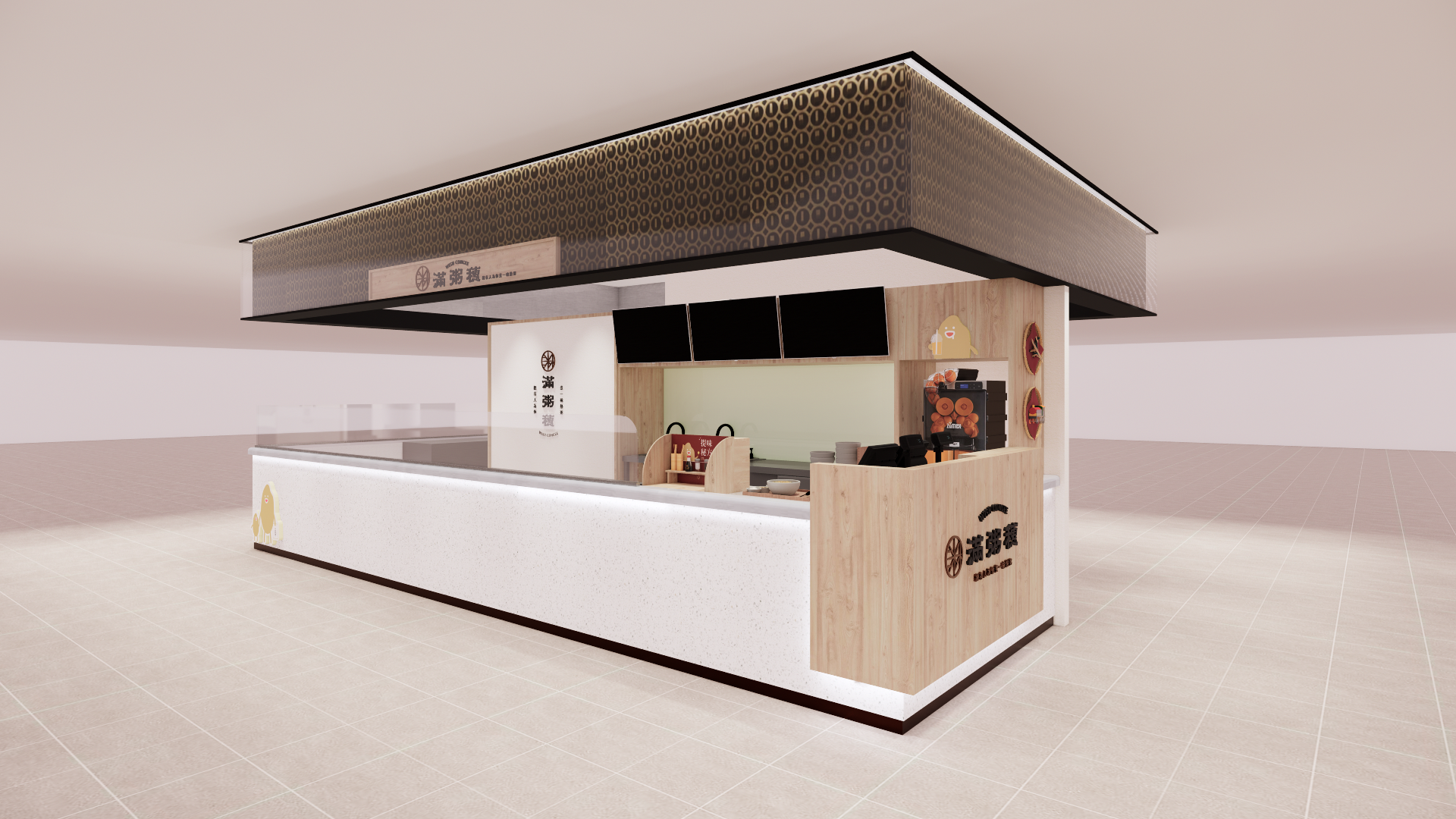 櫃檯左下角以立體做出品牌吉祥物小米人 讓空間氛圍更加溫馨,也有著品牌的理念:父母對子女的祝福與期盼 一碗溫暖的粥品蘊含業主對小孩的愛,也將這份愛傳遞給更多人