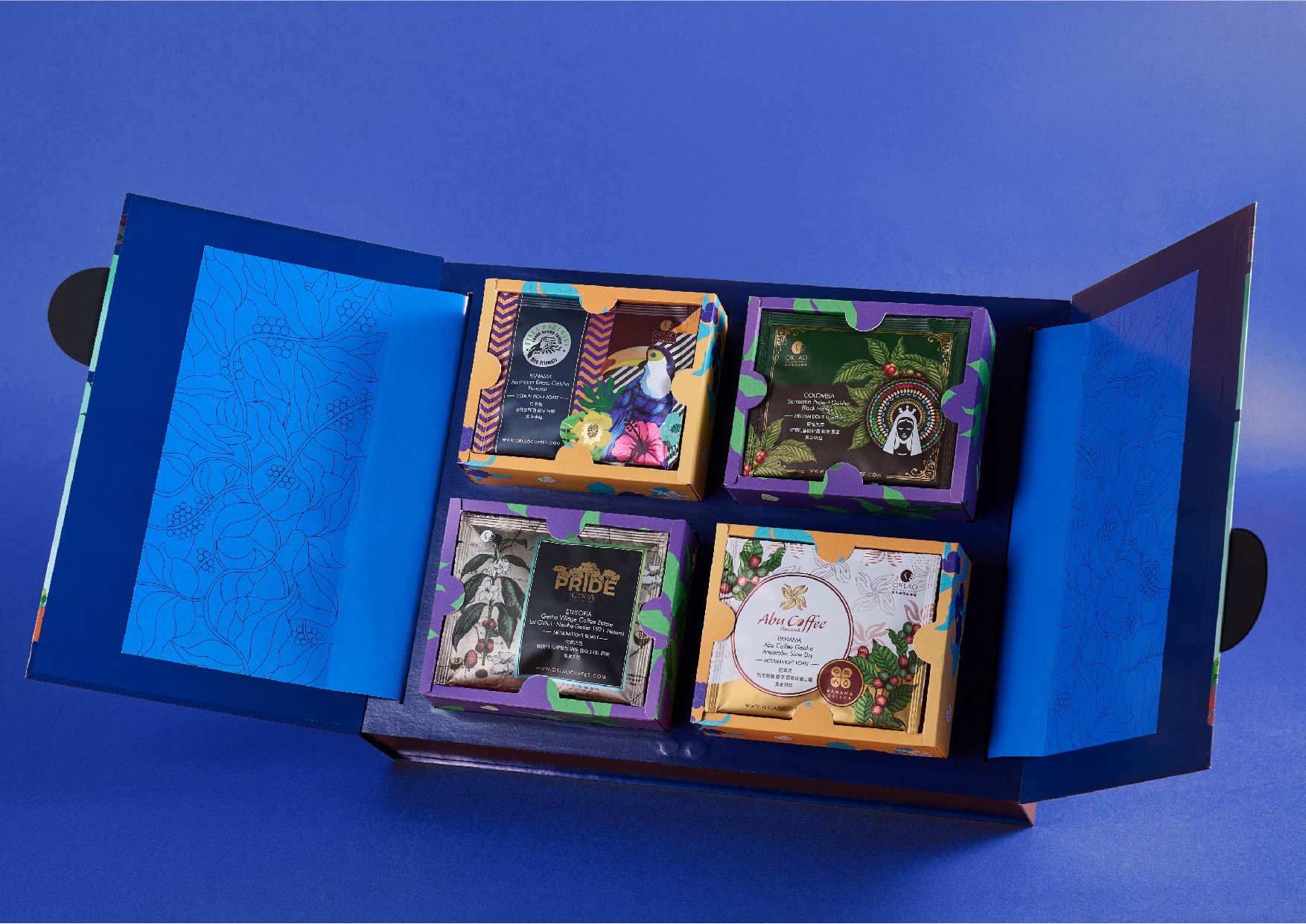 升降禮盒設計,以新藝術風格為主題,呈現出對藝術的崇尚。禮盒採用升降型設計,精緻的裝飾元素在打開時逐漸展現,猶如一場視覺藝術之旅,讓用戶在品味咖啡的同時,也沉浸在藝術的瑰麗世界中。 這一系列咖啡禮盒設計不僅展現了Art Deco的獨特風格,更通過巧妙融合不同文化元素,將咖啡的美味和藝術的魅力完美結合,帶給用戶一場視覺和味覺的雙重盛宴。無論是送禮還是自用,這些咖啡禮盒都將成為一份獨具匠心的禮物,讓人驚喜不已!