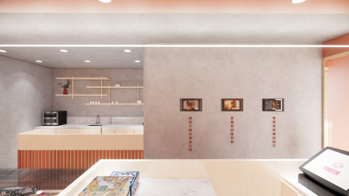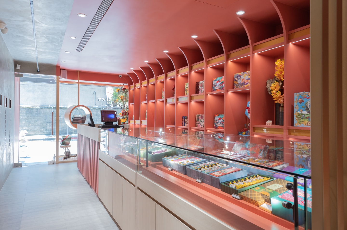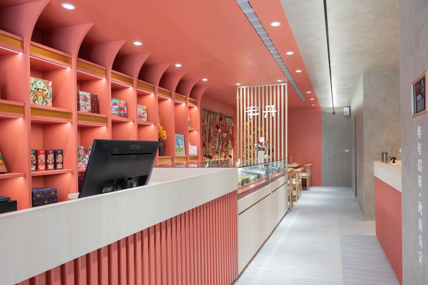 丰丹的『丹』有赤色之意,故以紅色元素貫穿整體空間,使得走入室內也能感受到創始人對於品牌、手藝、烘焙的一片丹心;