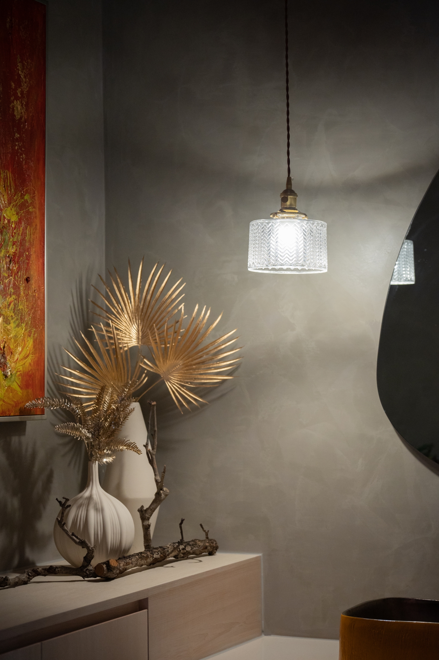 最後,櫃檯後方設置了半弧形的陳列櫃,在線條與燈光的簡單分割下,完美襯托出產品的奢美。