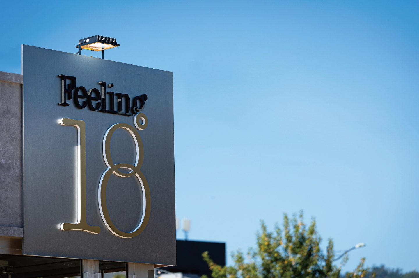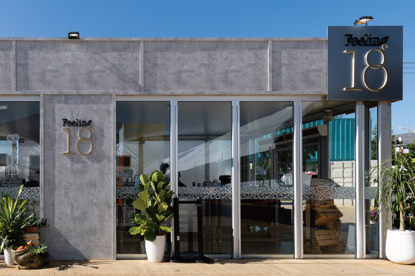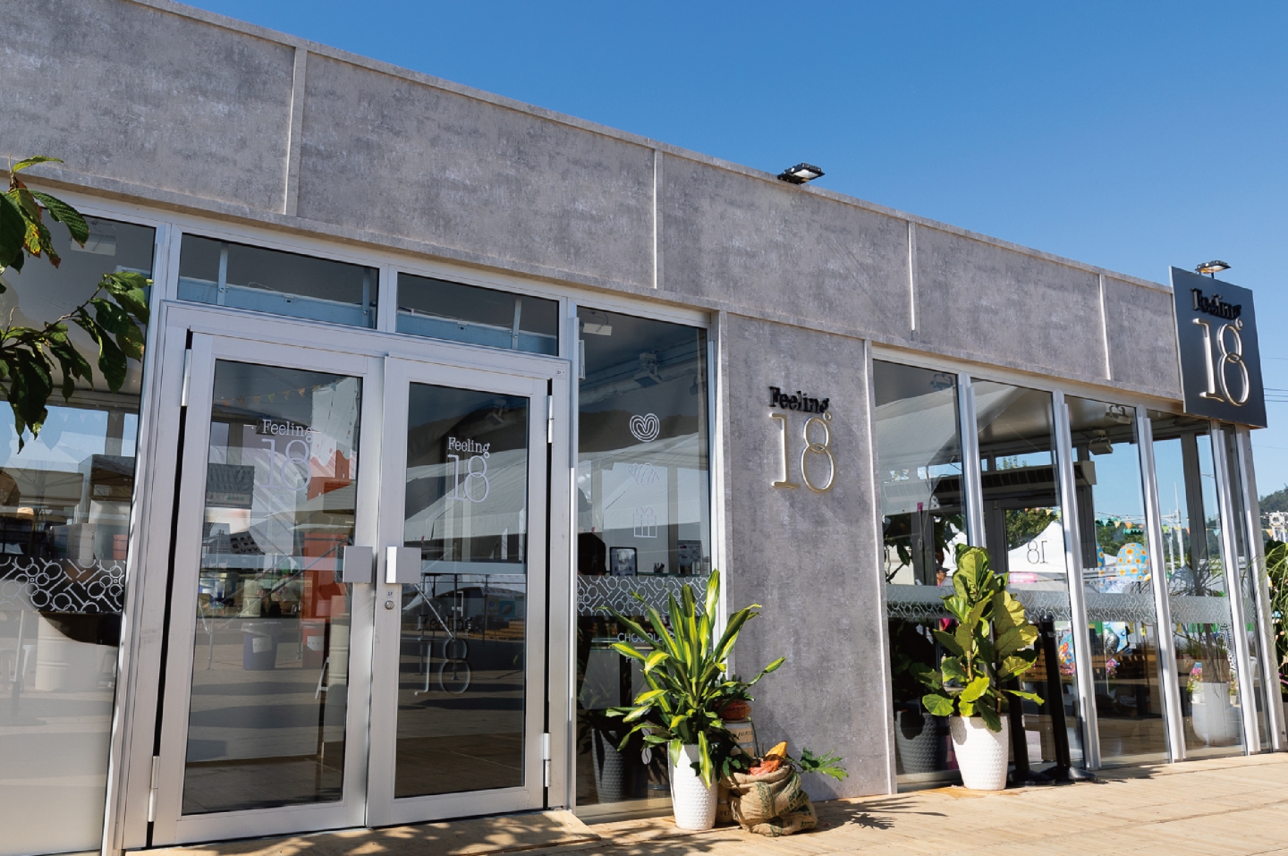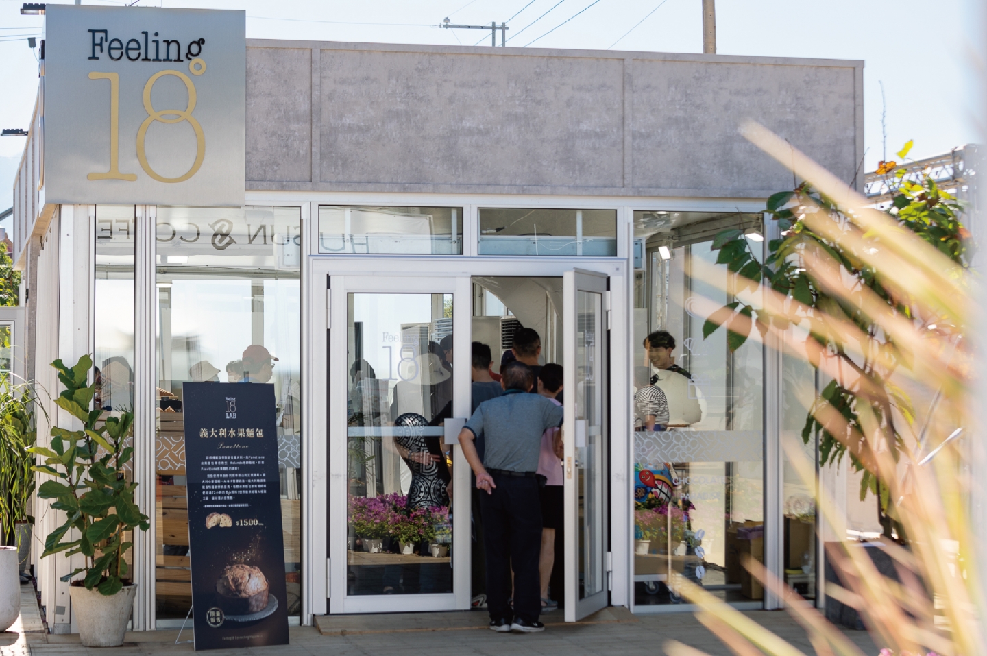 外觀整體以營造出純淨且高雅的氛圍,搭配顯眼的金屬招牌,凸顯品牌的專業和獨特性。透過卡點西德在通透的玻璃上繪製如同禮物緞帶般的圖案,增加視覺吸引力,使店面在快閃店中脫穎而出。 四周以綠色植物點綴,使得空間更顯活潑與朝氣。 店內櫃檯延續了外觀的整體視覺風格,以金屬貼模打造科技感,搭配各式層架展示商品,提供了多角度的商品呈現,方便顧客一目瞭然挑選商品。 整體設計風格既符合品牌的專業形象,又使得顧客在進入店內即能感受到Feeling18巧克力獨特的品牌魅力。
