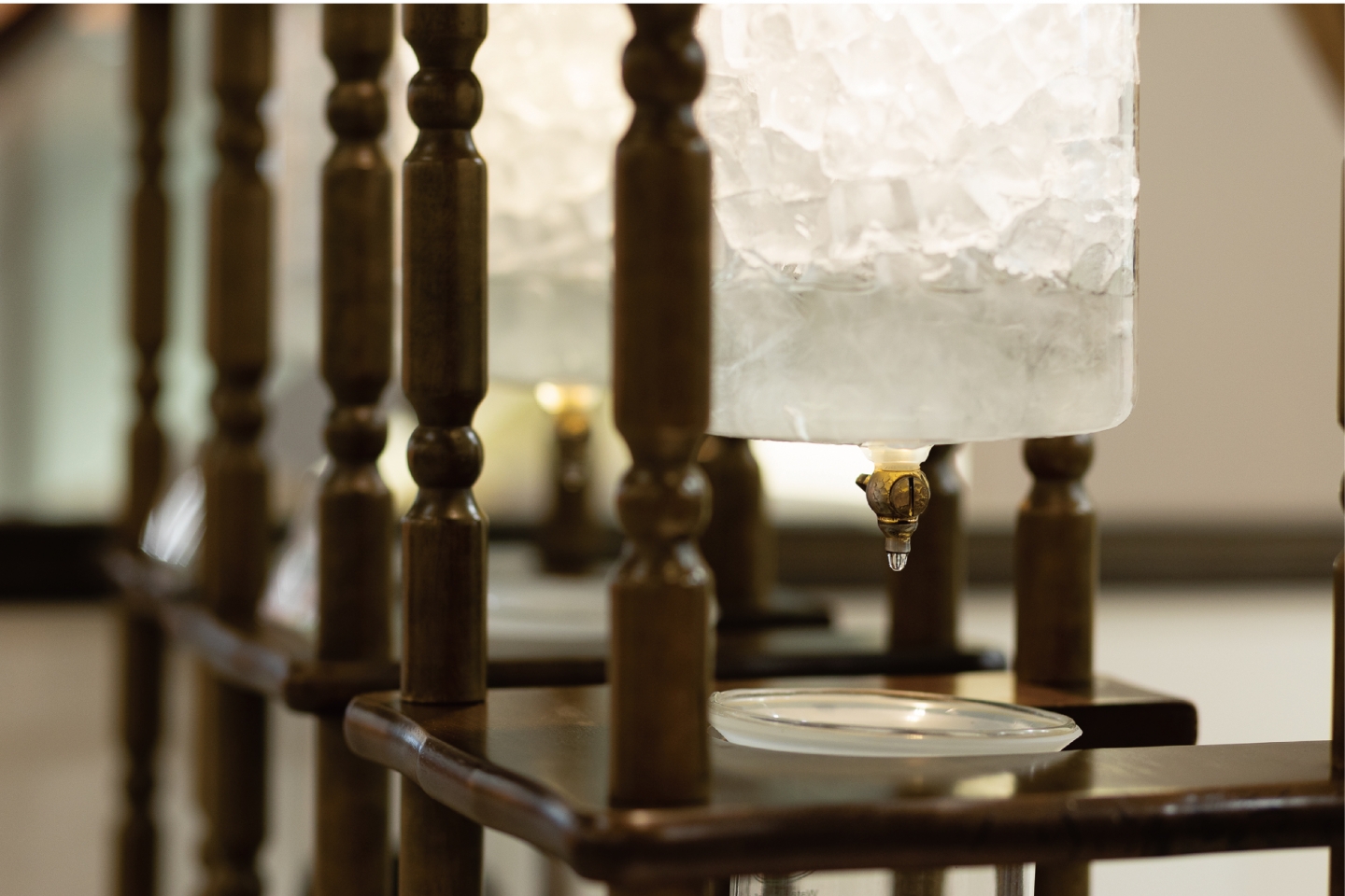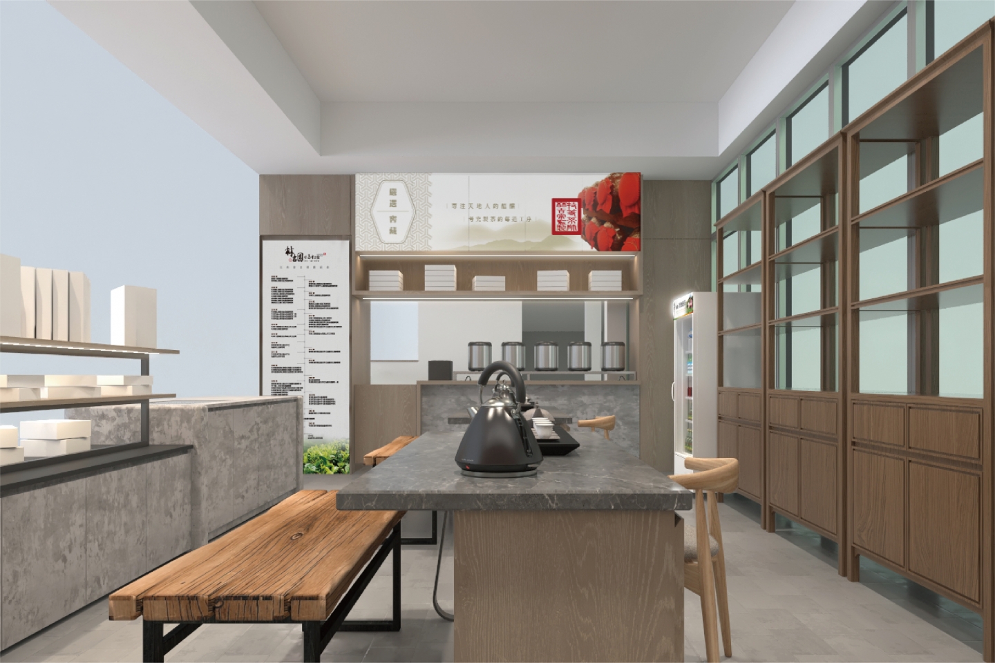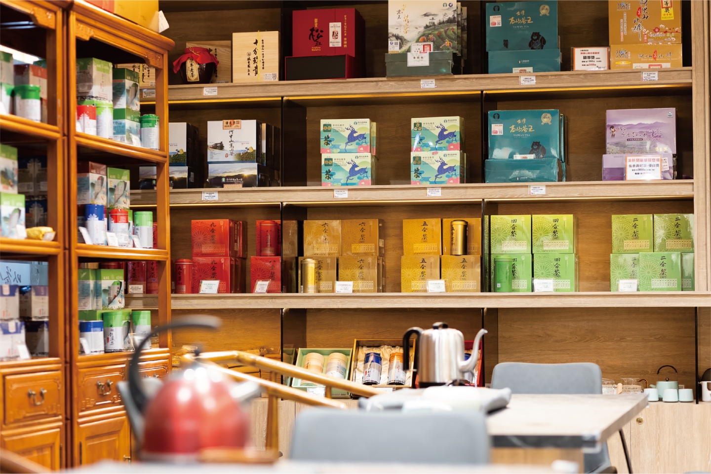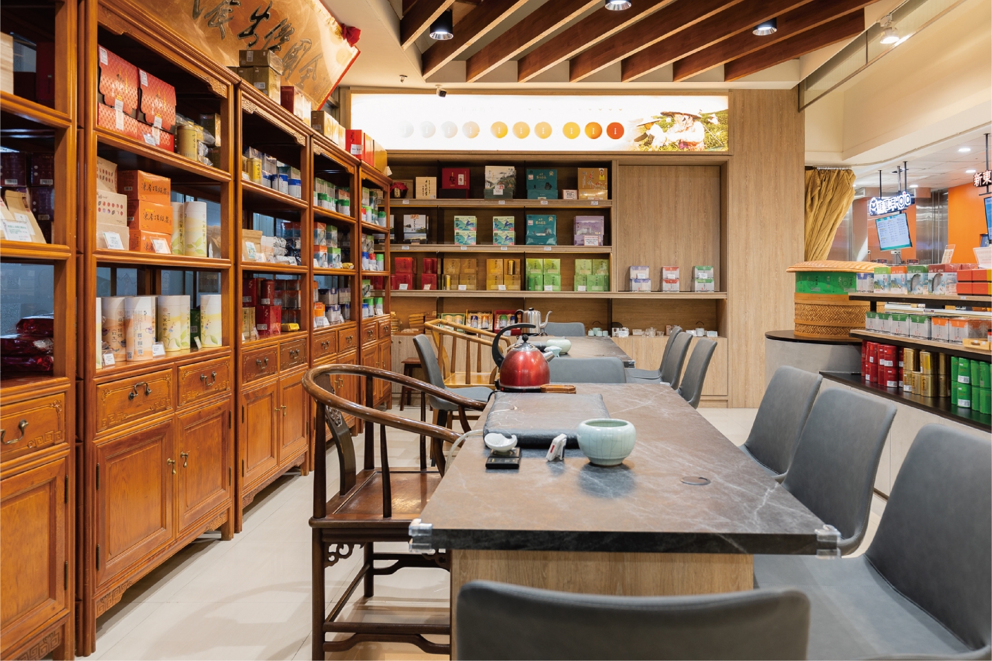 木製展示櫃、泡茶區、匾額等元素,打造出古色古香的空間風格,猶如品一杯好茶的禪意,展現了茶的深厚文化 靠牆的裝飾櫃陳列著各種茶品包裝,透過特色包裝打造獨特的視覺效果 內部設有一個泡茶區,營造出「以茶會友館」的氛圍,邀請顧客共同品味這份茶的悠雅。 冰滴茶飲區的櫃檯上擺放著三台冰滴機,每一滴都蘊含著茶的精華,讓味蕾在冰涼中陶醉。 空間簡約而現代感的氛圍,使得製茶的過程不再是一門神秘的藝術 而是直接呈現在顧客眼前,讓大家共同感受茶的精妙