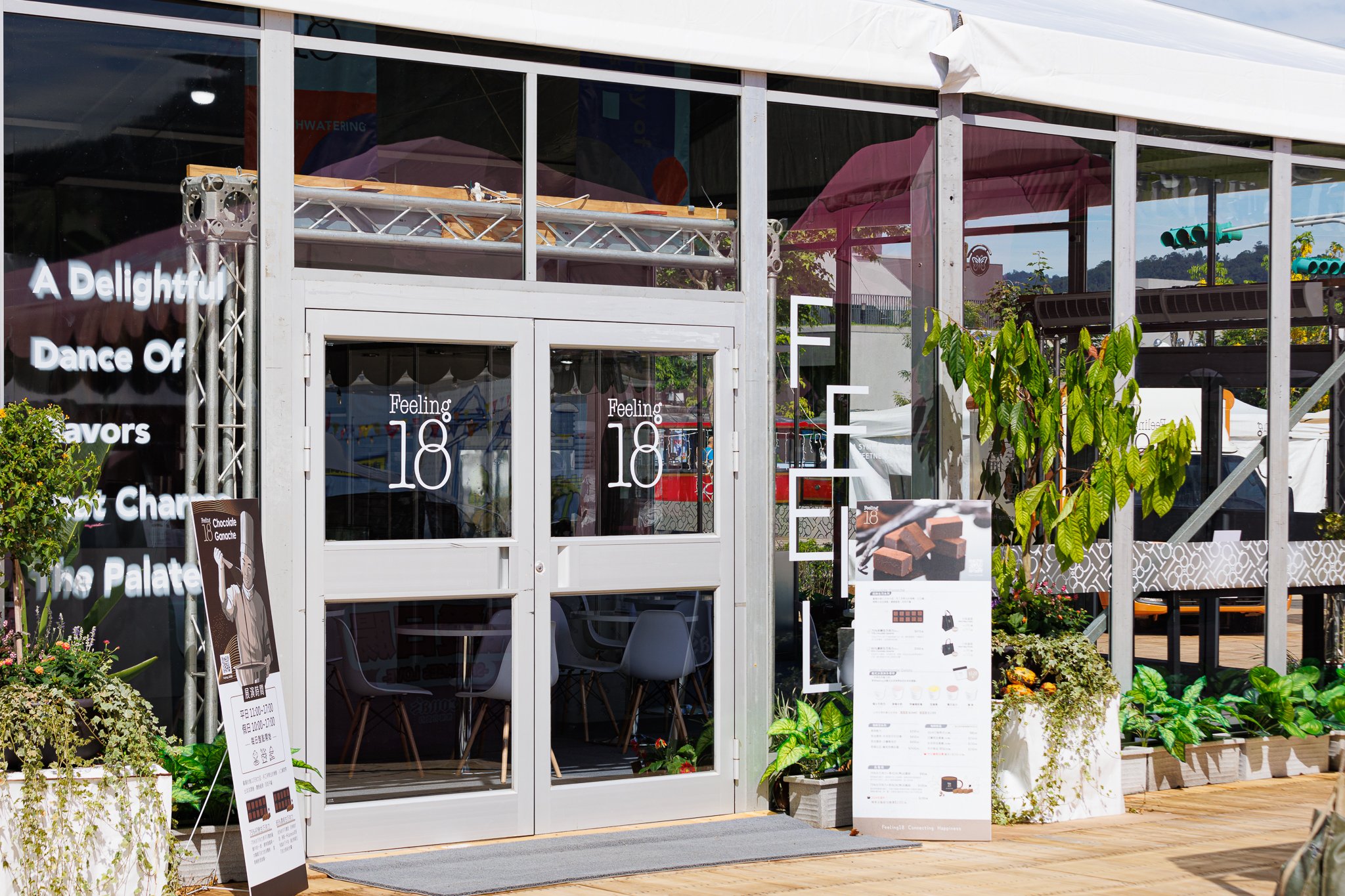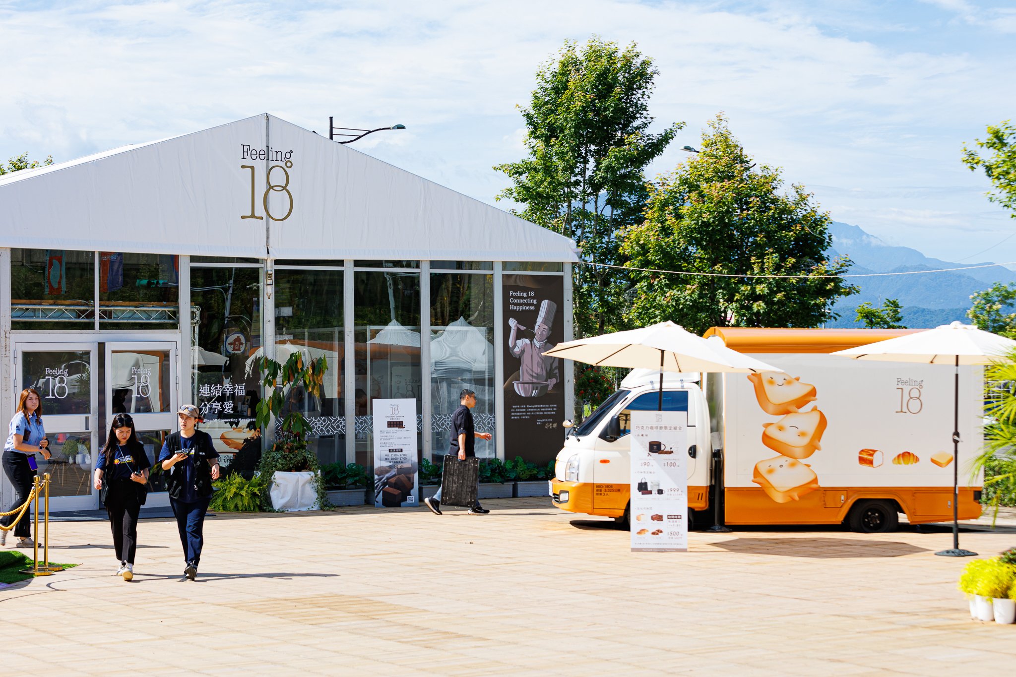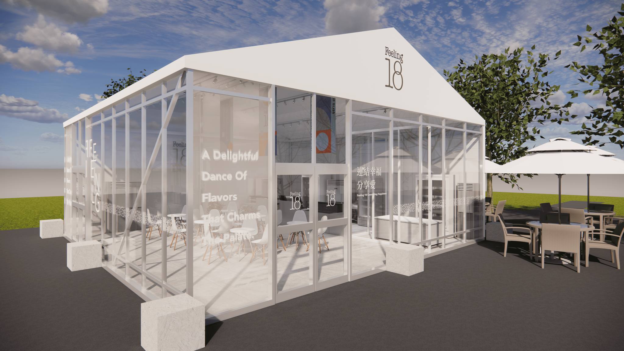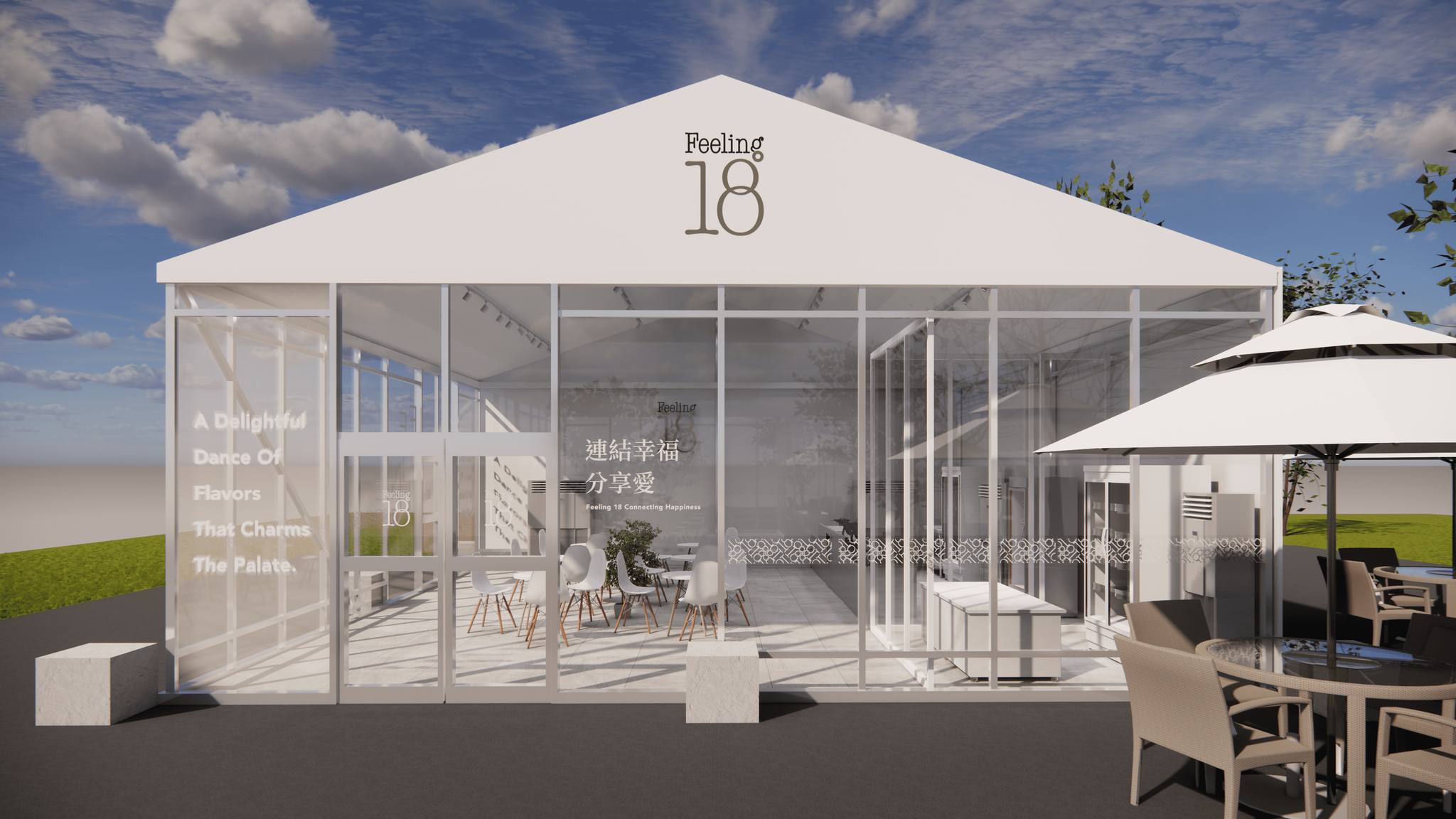 2024完美落幕的南投巧咖節,這次的Feeling18快閃店設計上增添許多小巧思 外觀以純白色系的卡點西德打造與白色系的透明屋作呼應 設計上以動態模糊的文字設計,讓整體空間增添生命力