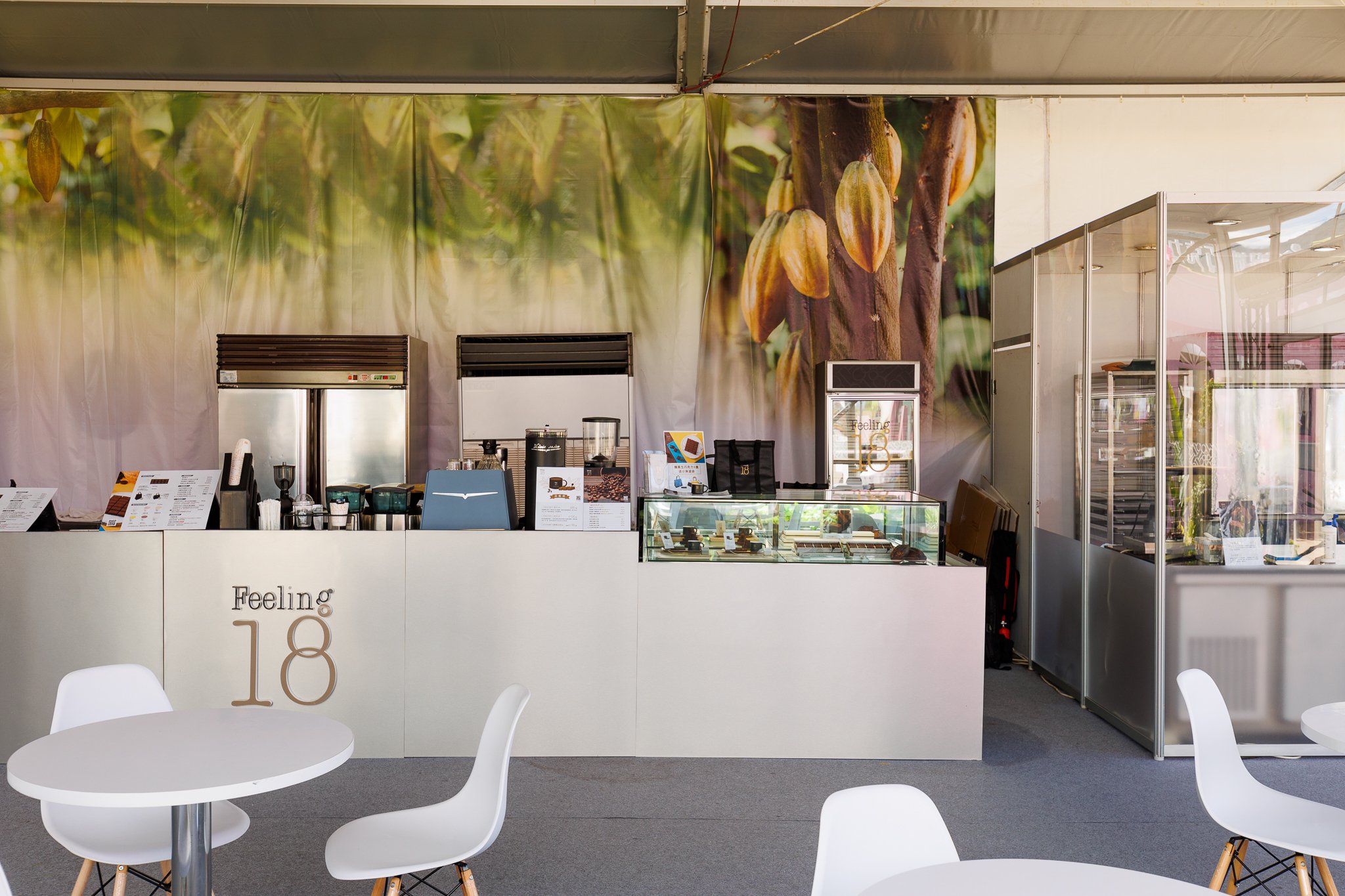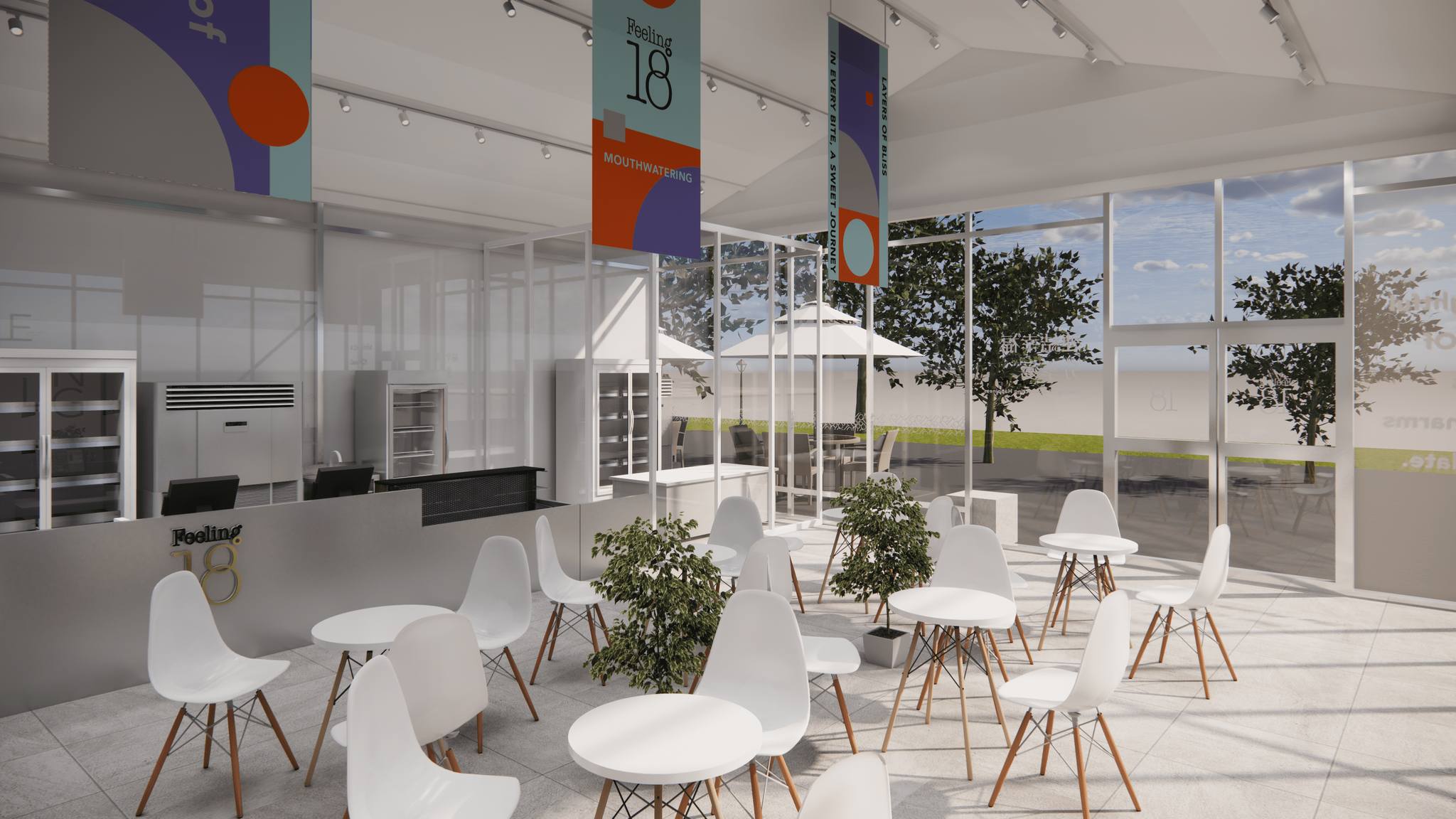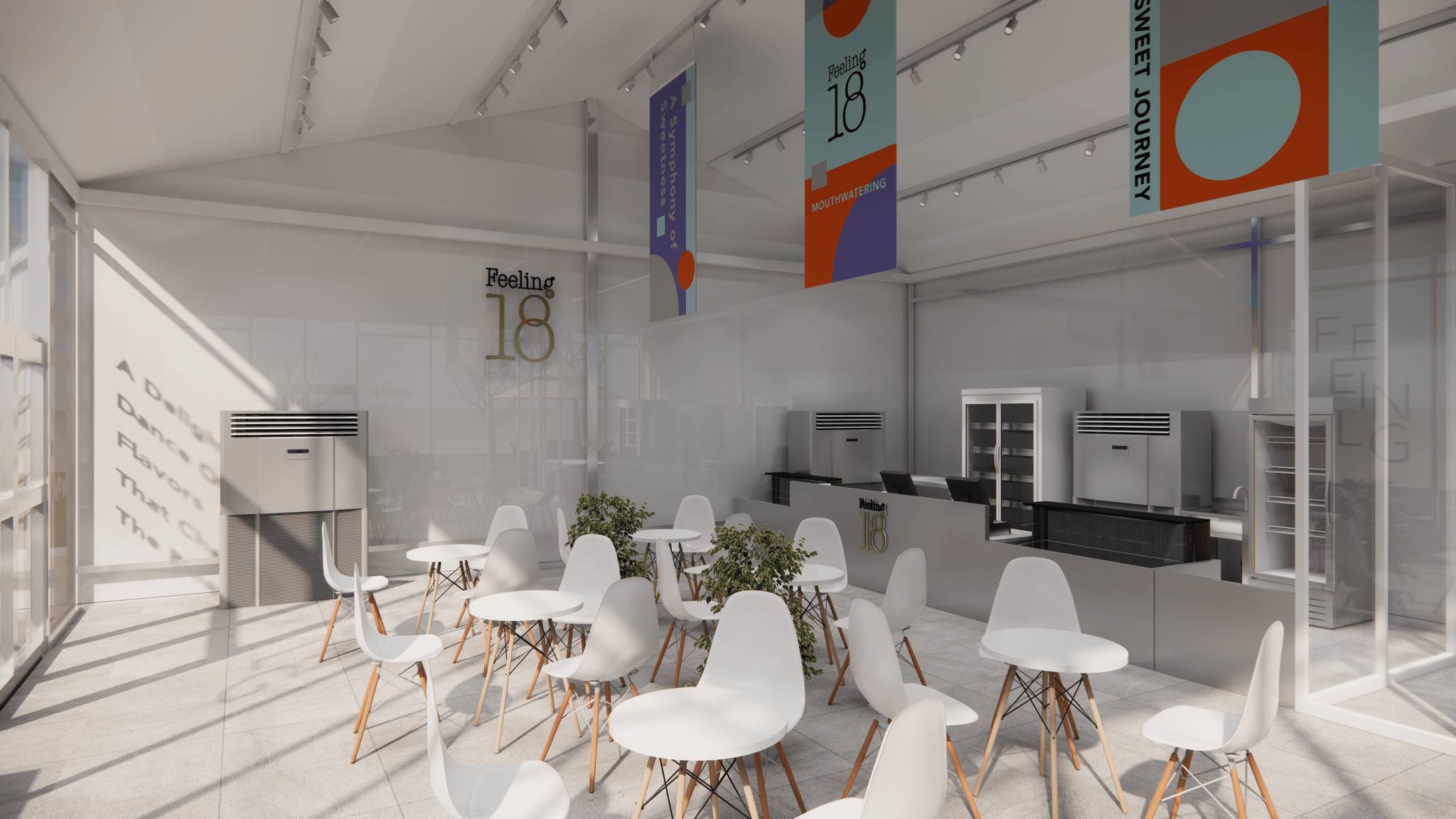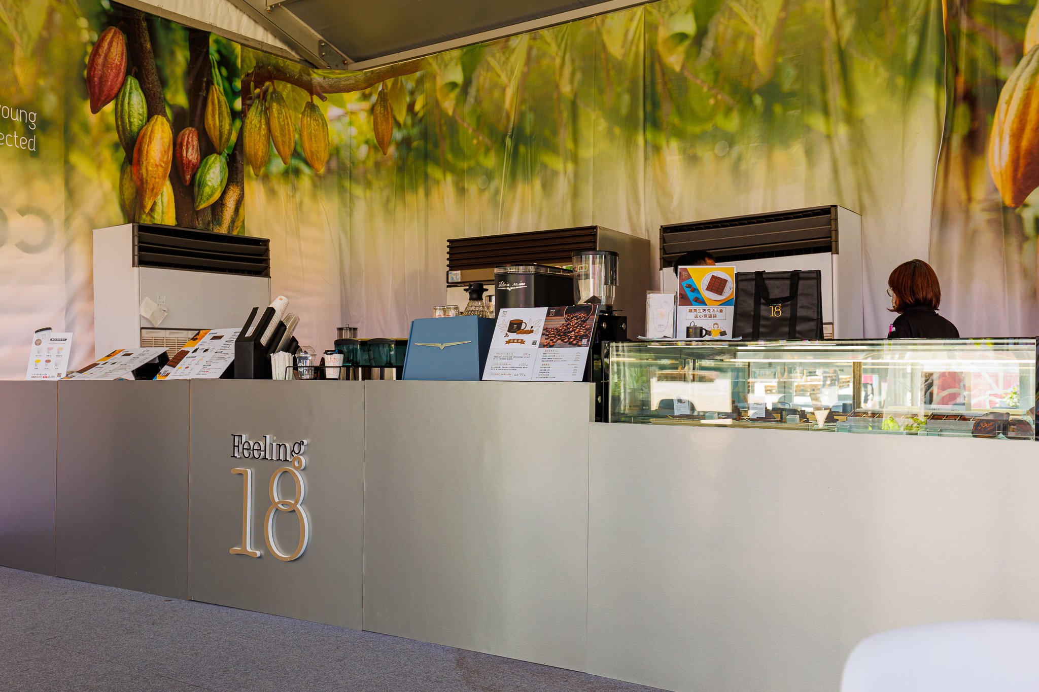 2024完美落幕的南投巧咖節,這次的Feeling18快閃店設計上增添許多小巧思 外觀以純白色系的卡點西德打造與白色系的透明屋作呼應 設計上以動態模糊的文字設計,讓整體空間增添生命力