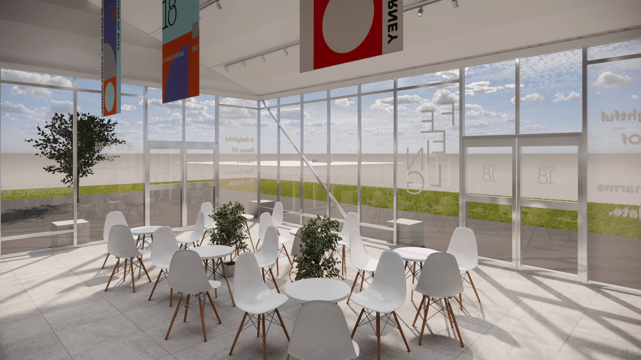 此次的透明屋增設了白色帆布包覆,在帆布上也使用卡點設計 以LOGO跟slogan搭配,並增加代表著巧克力跟咖啡的圓點點設計 讓帆布變成另類的打卡牆面 玻璃屋四周固定的水泥塊,使用綠植栽包覆美化
