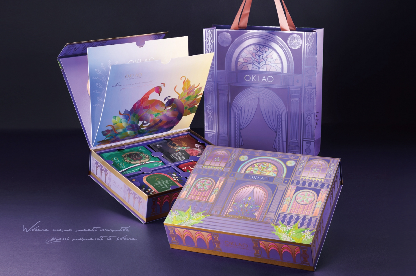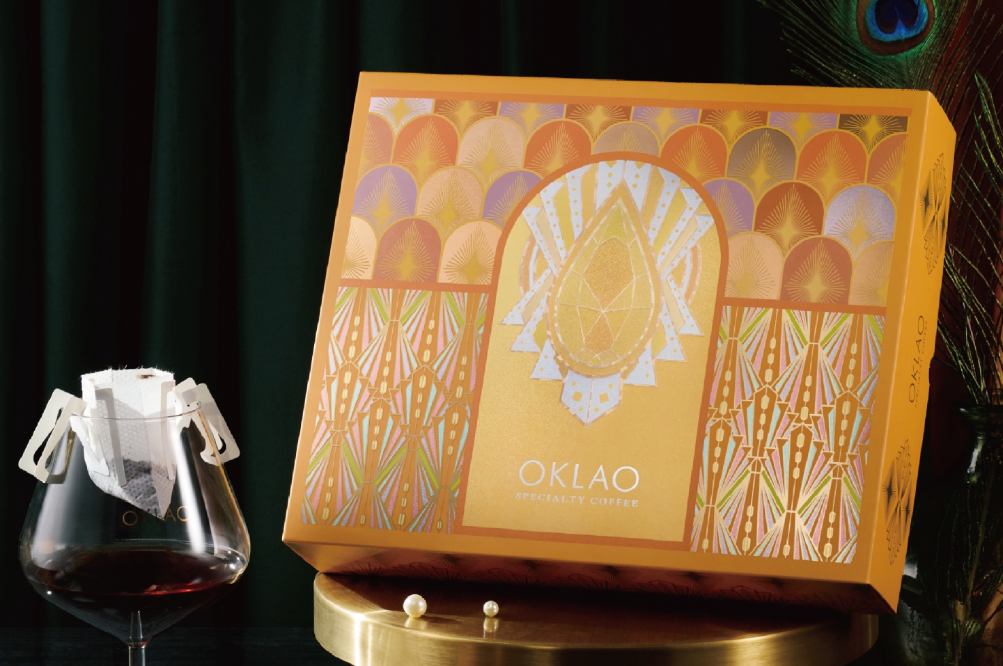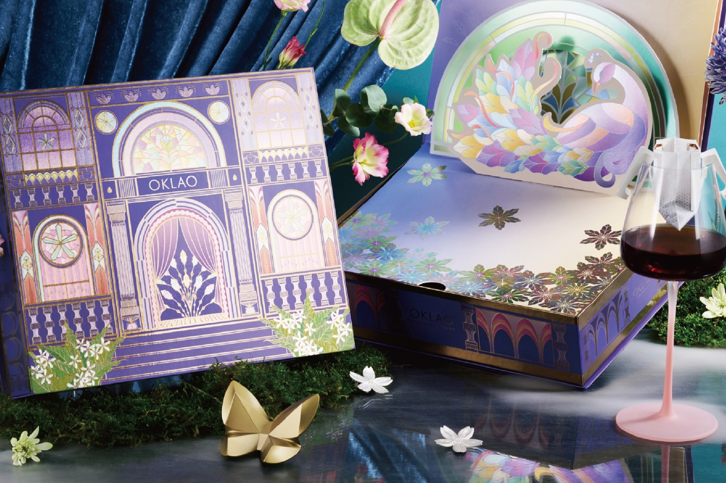 2024【年度風雲】 以收藏館為概念,靈感來自水晶與彩虹玻璃,盛開的花園中矗立著一隻五彩斑斕的孔雀,開盒後立體旋轉的彩鑽窗花,就像是收藏館的穹頂壁畫,第二層立體孔雀印入眼聯,羽毛轉變成咖啡葉 多彩的羽毛象徵咖啡多元性