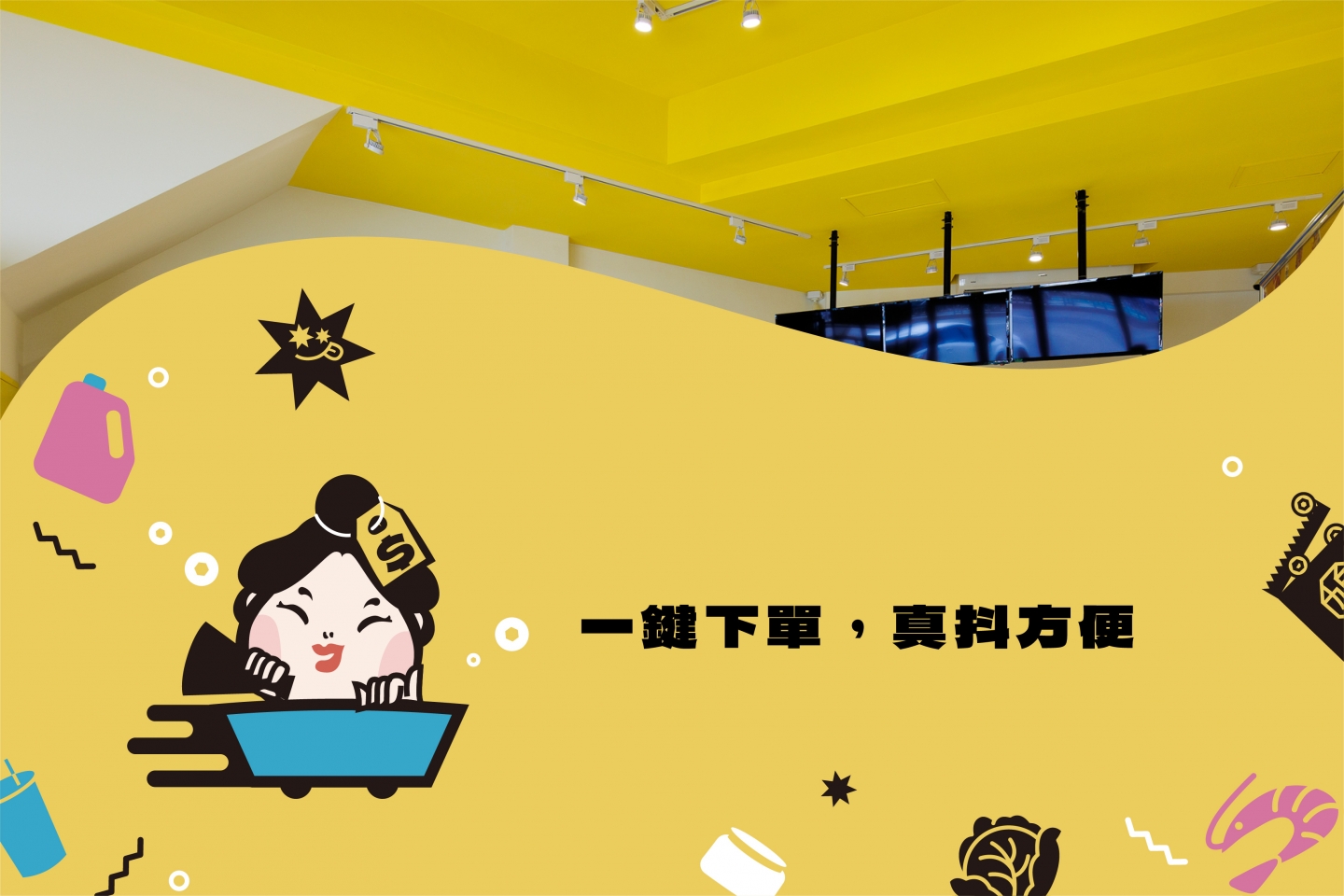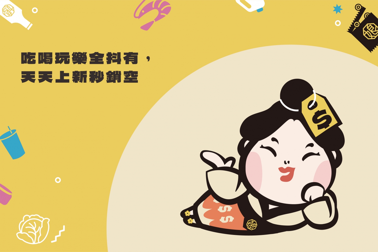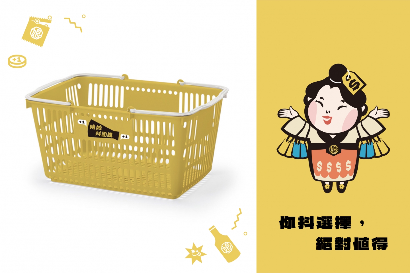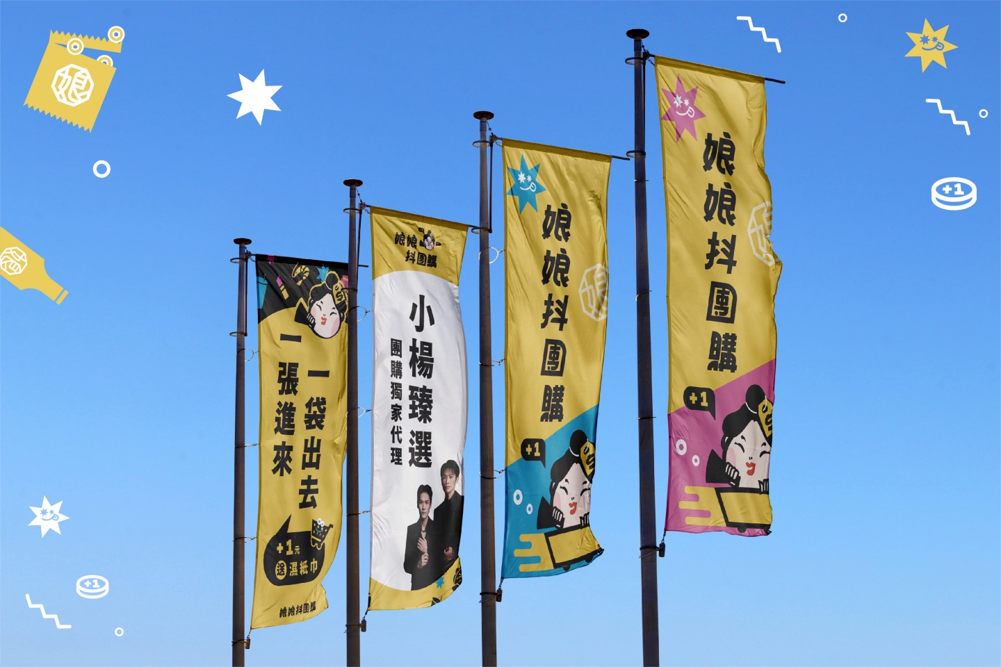 2024娘娘抖團購 X 商瑪廣告| 呼應品牌名, 以叫賣姿態宮廷娘娘化身為現代, 化身為現代團購主, 作為品牌IP角色。 主色維持黃色, 輔助色再添加藍色及粉色, 為品牌呈現活力、歡樂的氛圍。