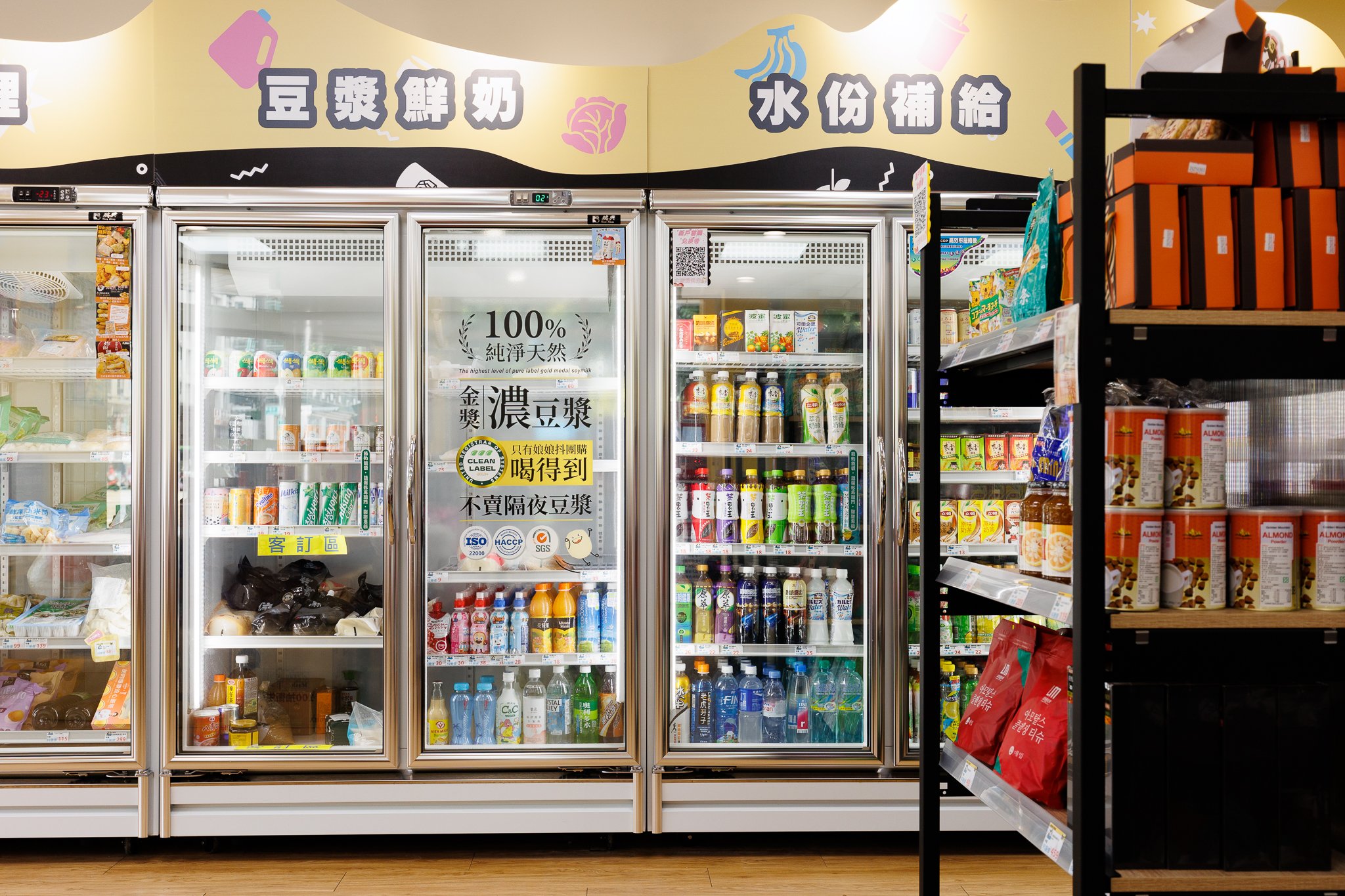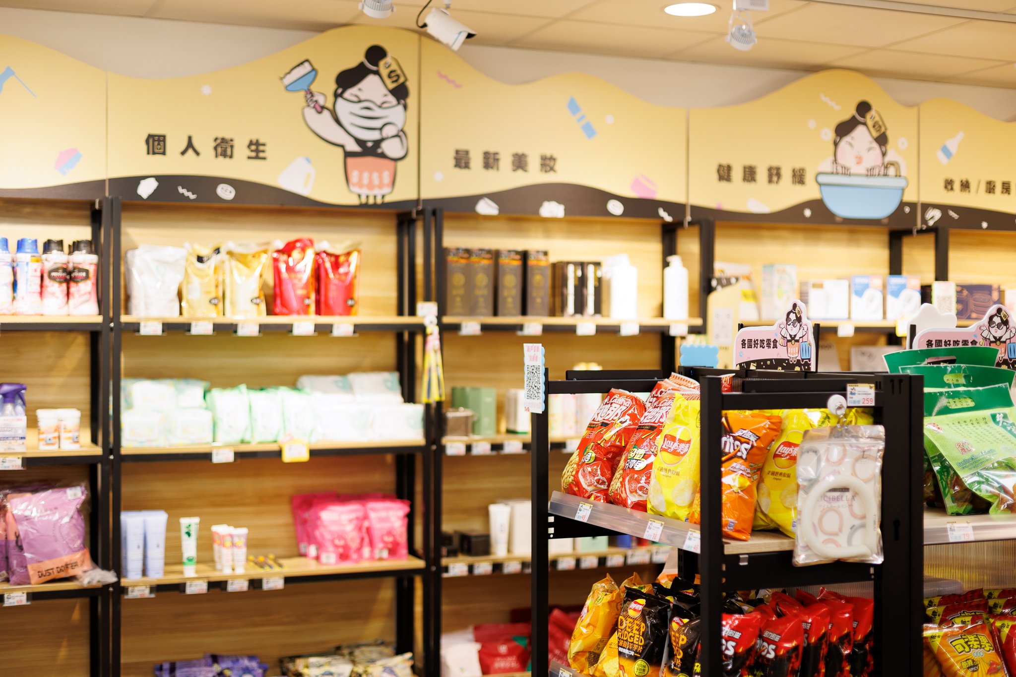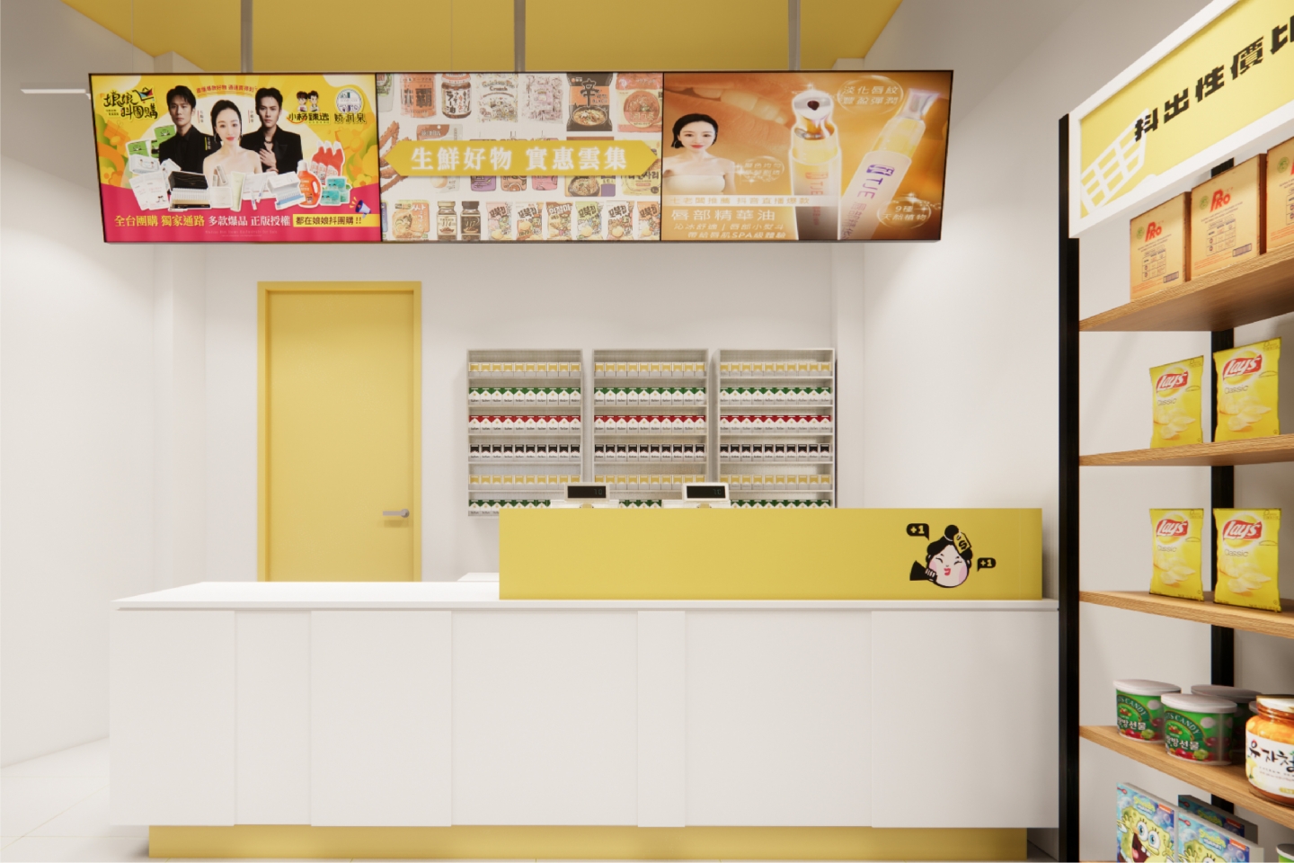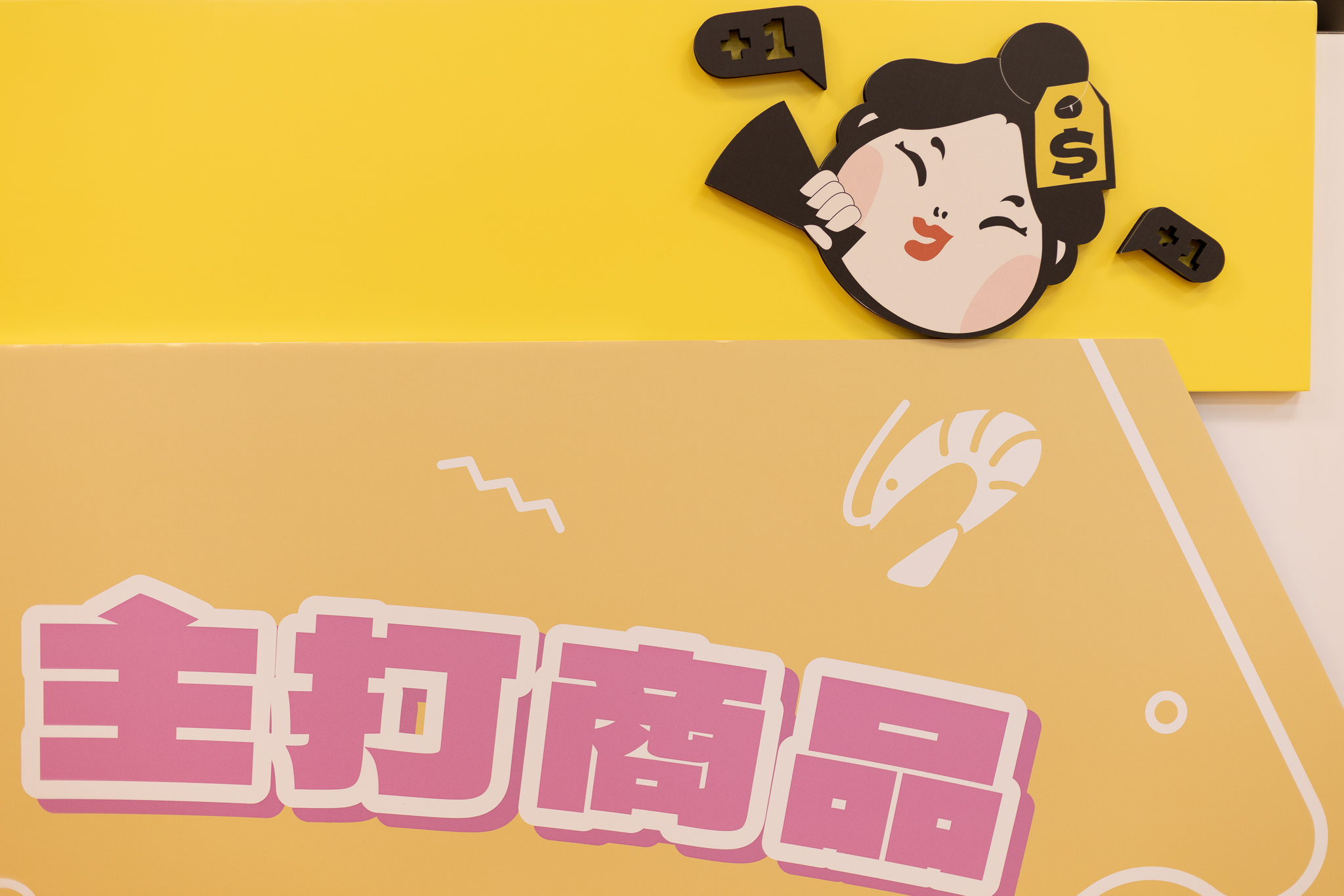 沿用品牌色加以輸出個是背板, 增添整體明亮感, 讓顧客在選購時更加有方向感, IP形象也能拉近與顧客的距離。