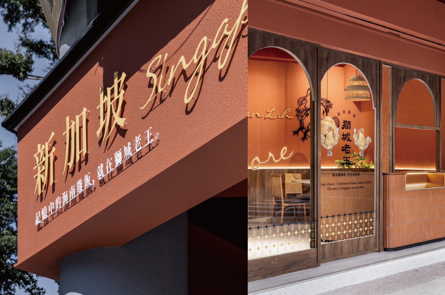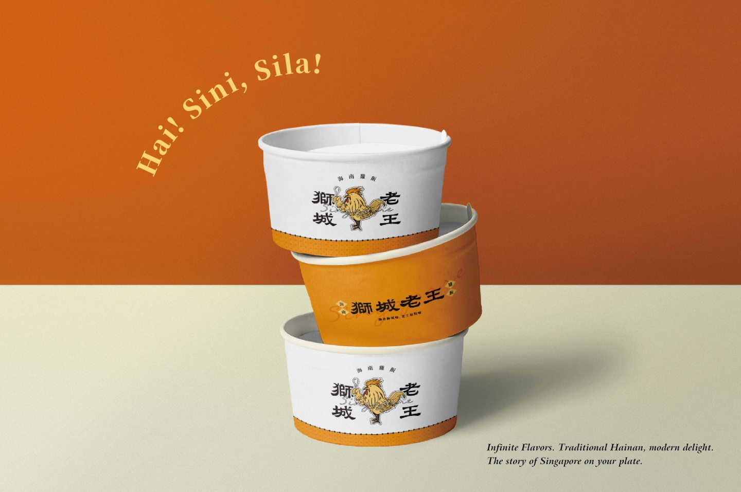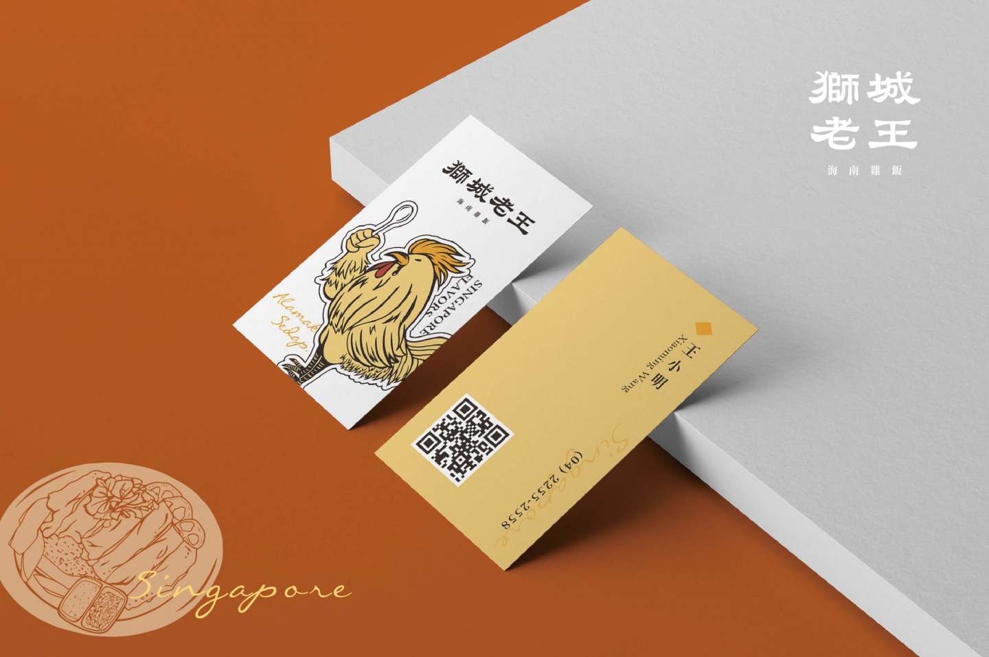 在LOGO設計上 以拿著湯匙準備開動的公雞作為主角,彰顯海南雞飯的招牌特色 公雞的雞冠經過巧妙設計,宛如獅子的雄偉鬃毛 象徵新加坡「獅城」的特色形象 公雞手持湯匙,垂涎三尺的模樣更添趣味 傳遞出對美食的無法抗拒。 而文字設計則在末端融入了獅子鬃毛的律動感 與公雞羽毛的垂翹姿態,呈現品牌的細膩巧思