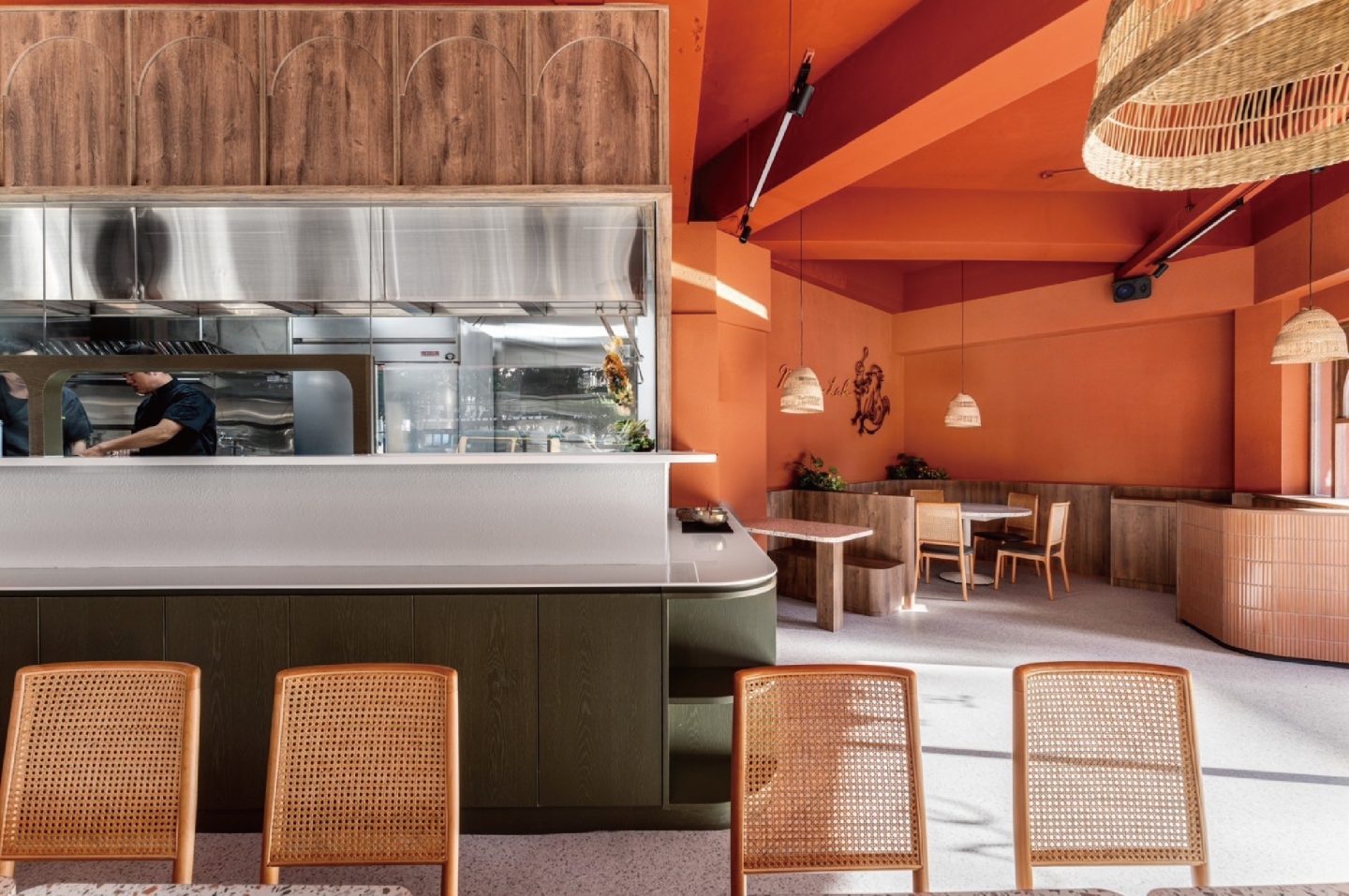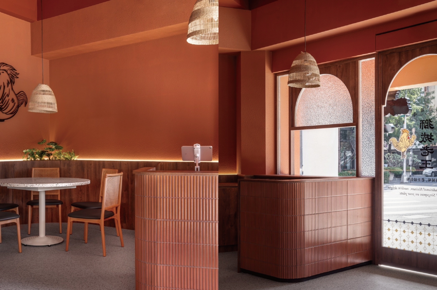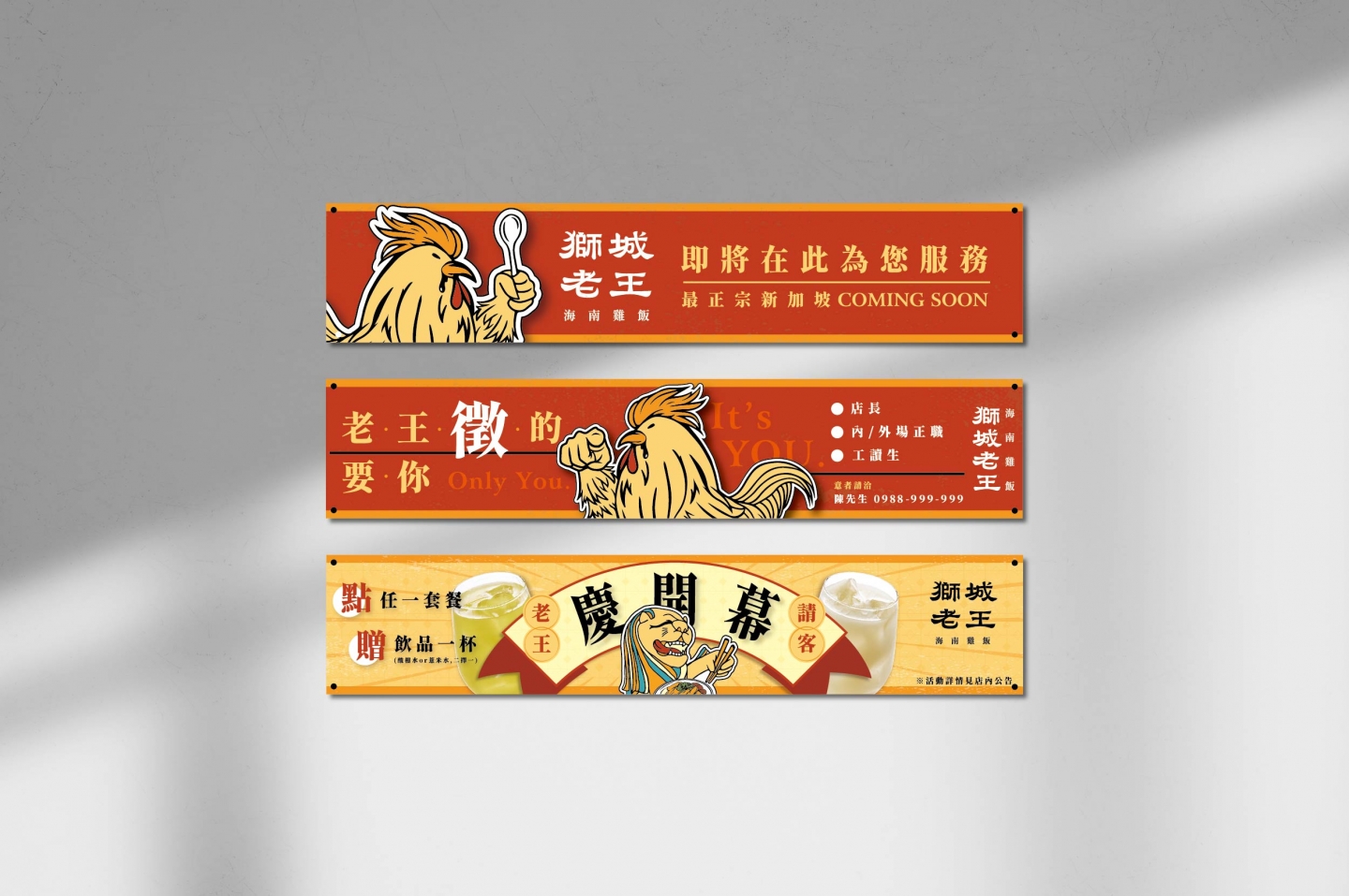 在LOGO設計上 以拿著湯匙準備開動的公雞作為主角,彰顯海南雞飯的招牌特色 公雞的雞冠經過巧妙設計,宛如獅子的雄偉鬃毛 象徵新加坡「獅城」的特色形象 公雞手持湯匙,垂涎三尺的模樣更添趣味 傳遞出對美食的無法抗拒。 而文字設計則在末端融入了獅子鬃毛的律動感 與公雞羽毛的垂翹姿態,呈現品牌的細膩巧思