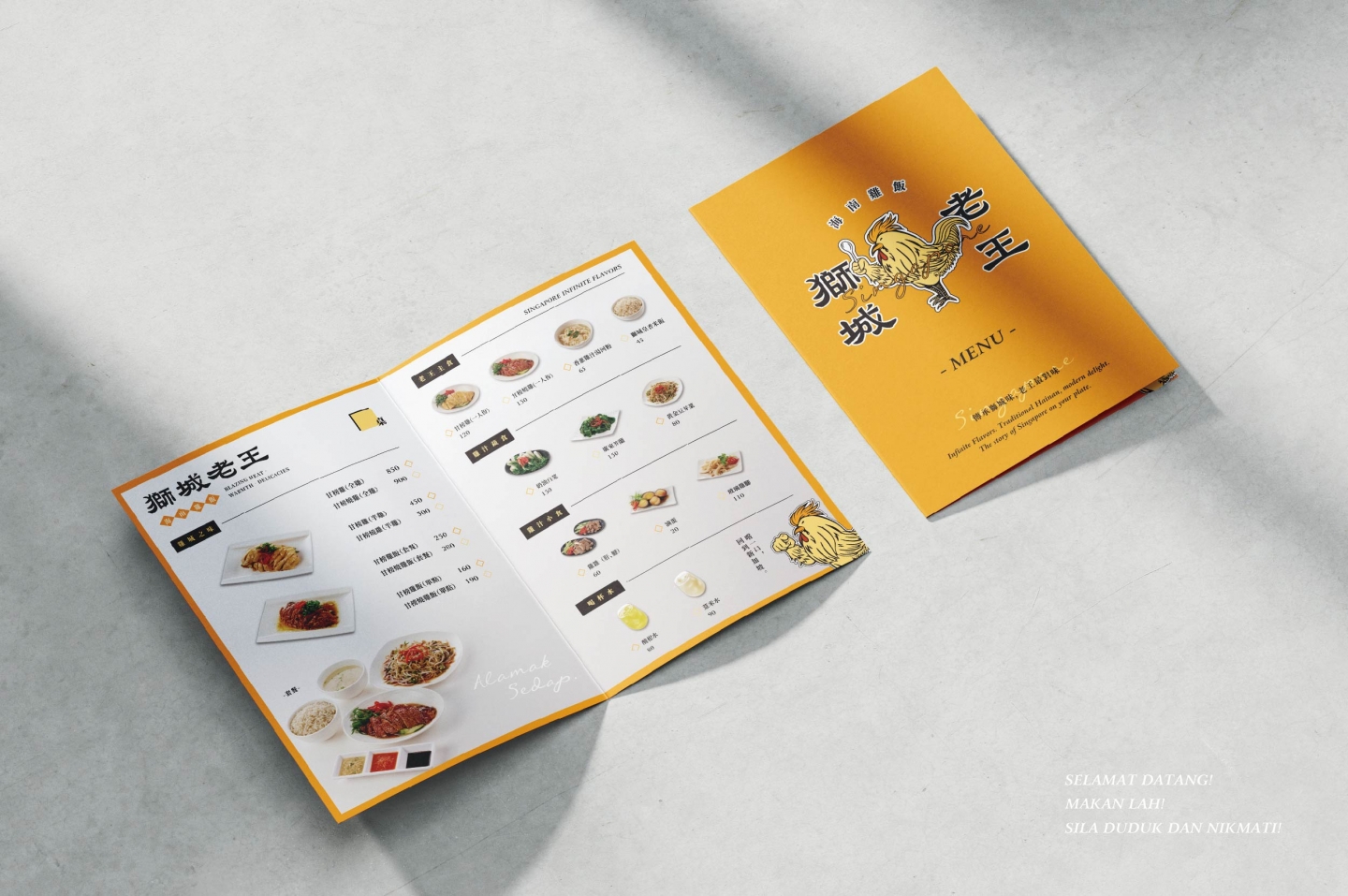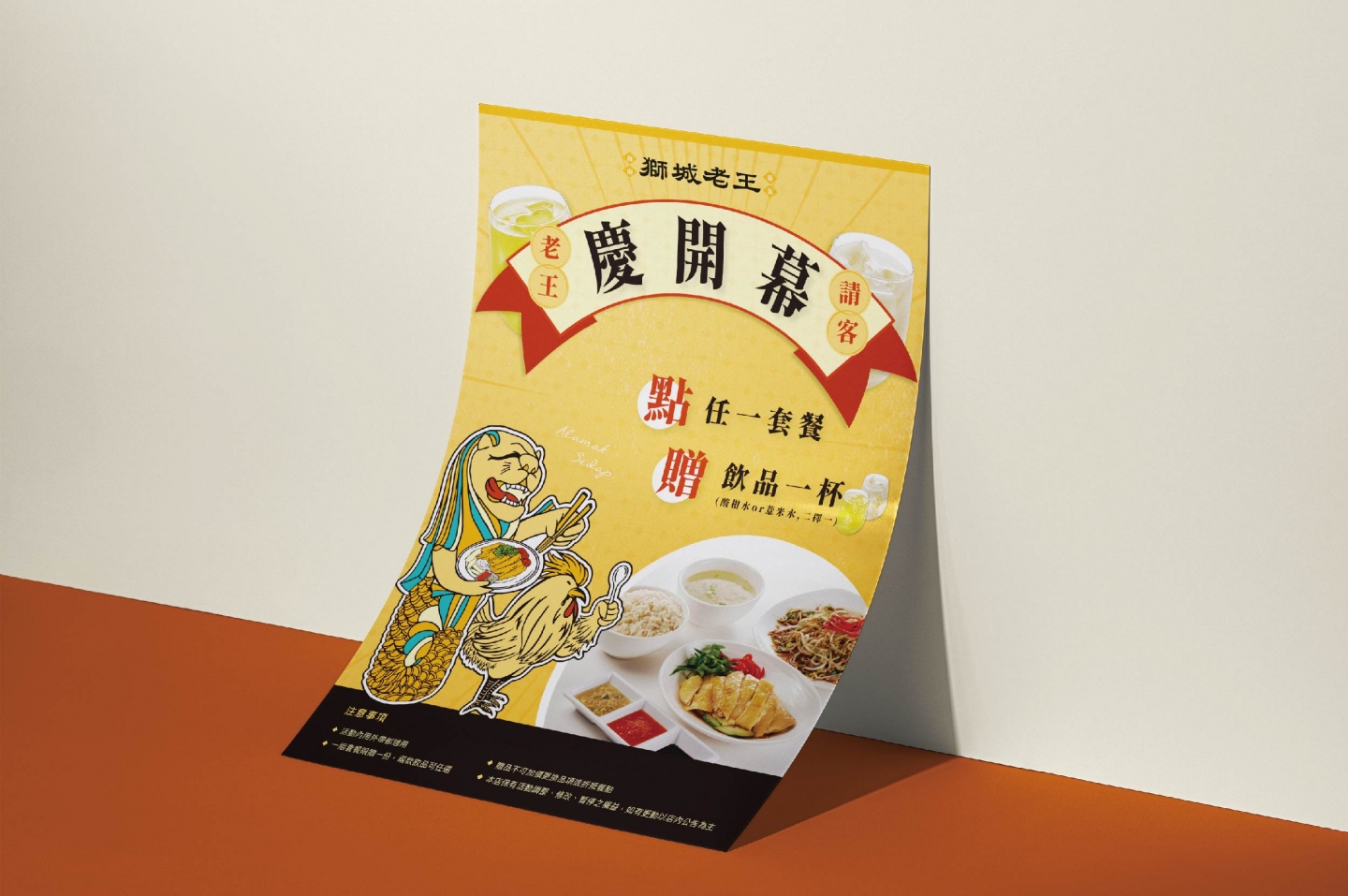 輔助圖型則採用了明亮的黃色與橘色調 象徵金黃油亮的海南雞肉,喚起食欲的同時也傳遞溫暖與喜悅 並以手繪風格加入新加坡代表性地標——魚尾獅身 將濃厚的異國情調與視覺趣味融合 此外,手繪圖中還特意呈現了魚尾獅身手持海南雞飯的場景 讓每一個細節都充滿故事性,生動地詮釋出品牌與新加坡味道的緊密連結。
