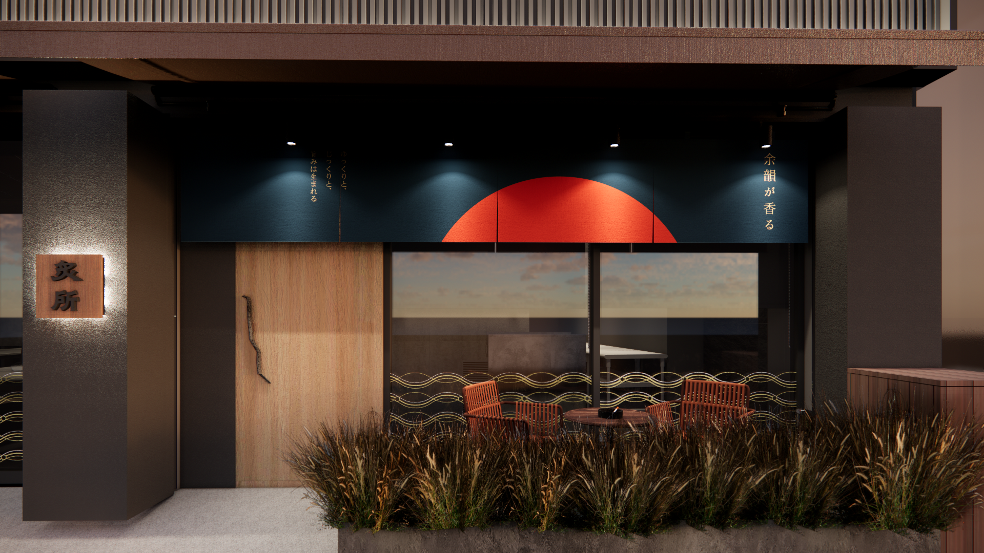 視覺設計上,字體就是主角。以俐落銳利的筆觸,呼應職人對刀工的精準掌握,字形結構開張有力,如同焰火燃燒般地充滿張力。整體看似簡約,卻蘊含如炙火般的大器與氣勢,讓品牌印象鮮明而深刻。