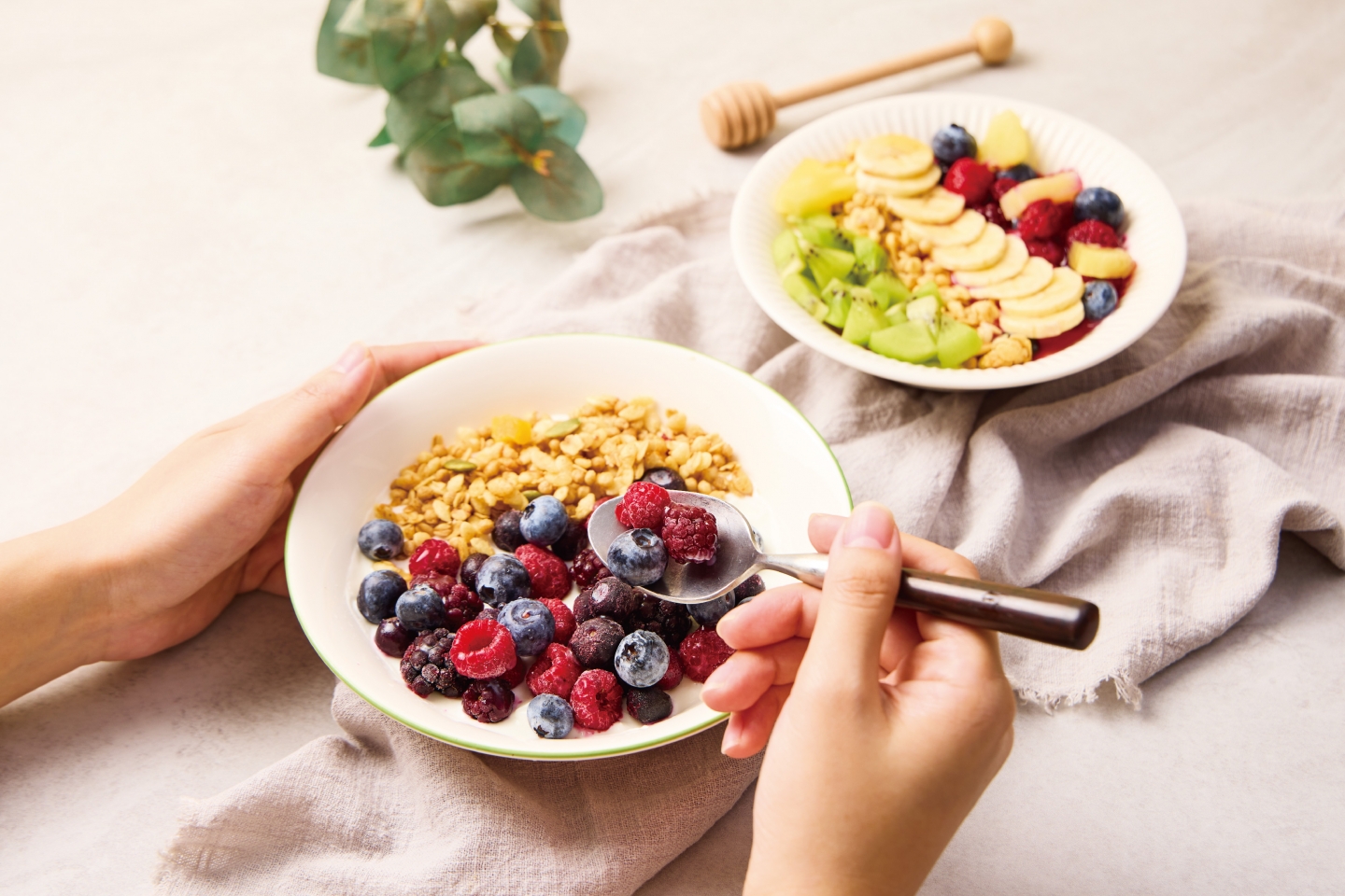輔助圖型應用上,我們將 蔬果、魚塊、花椰菜等食材 抽象化為幾何化小圖形,營造輕快有趣的視覺氛圍