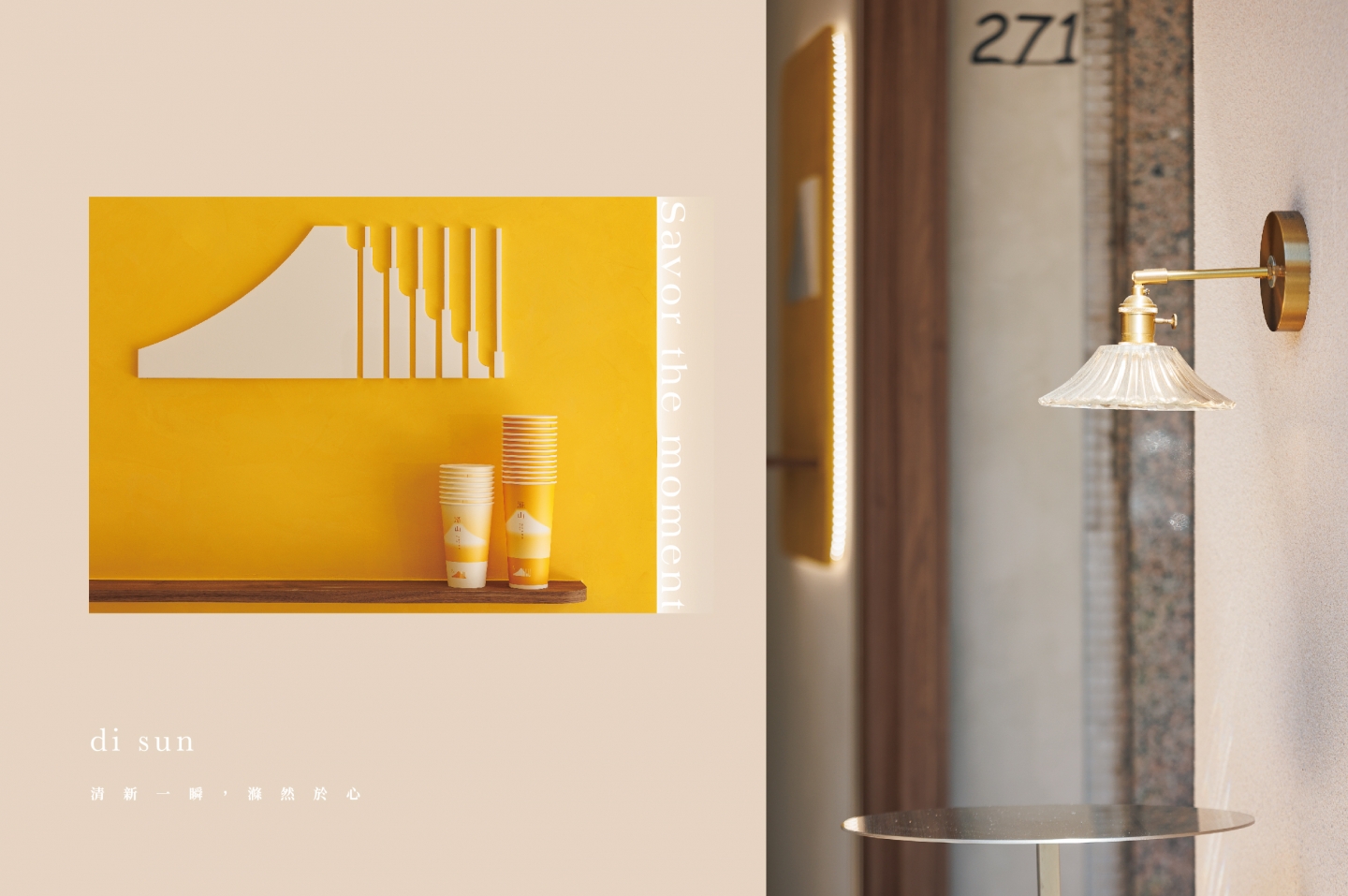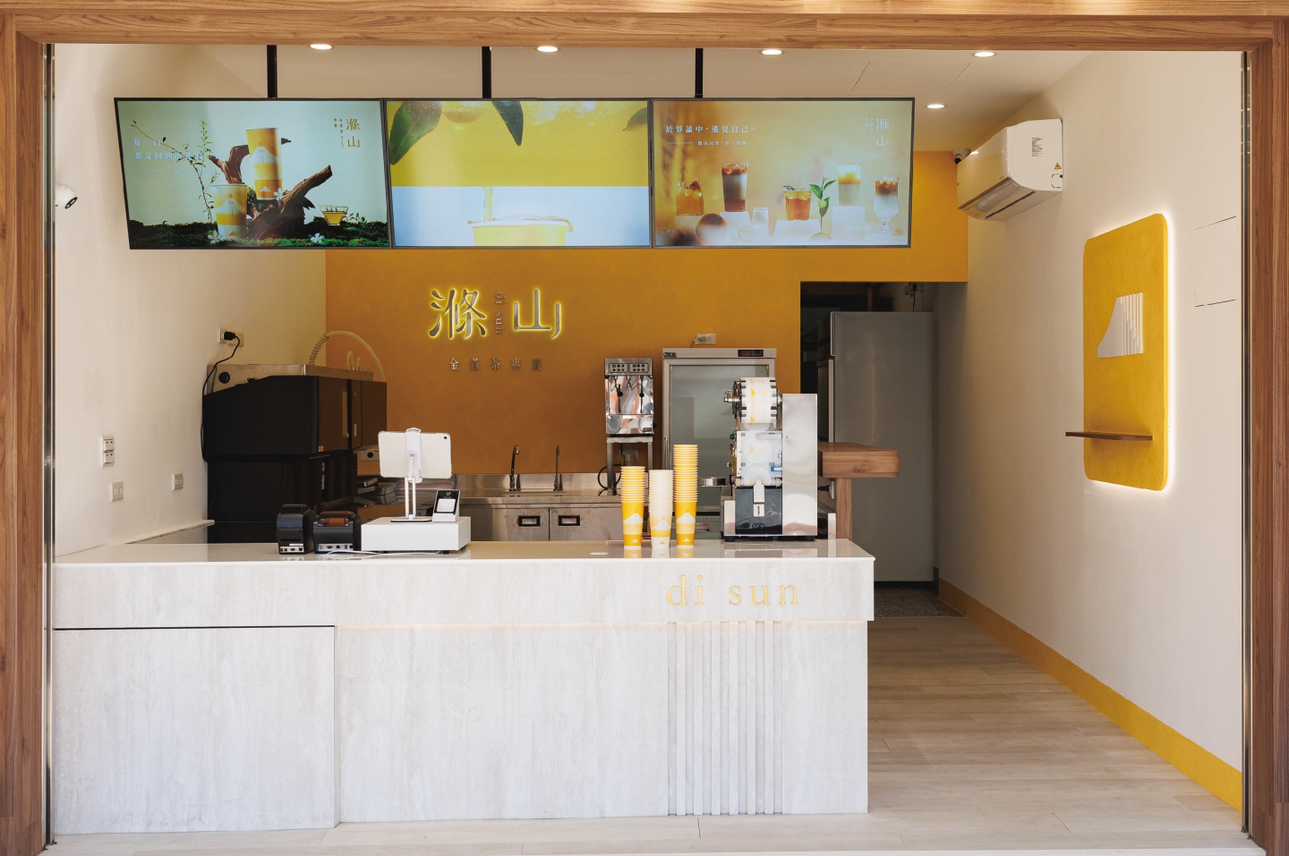 空間設計強調把茶的清爽與山的寧靜帶進生活之中,因此以淺白色大面積塗蓋,營造視覺通透感;並以「緗色」作為視覺焦點,在空間作為畫龍點睛效果,增添溫潤的氛圍,並為品牌注入沈穩、素雅的質感韻味。