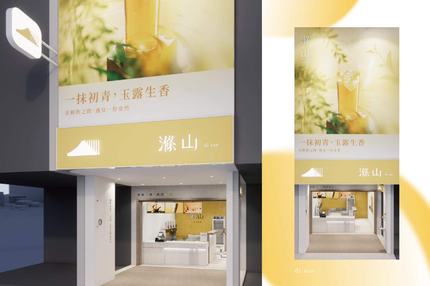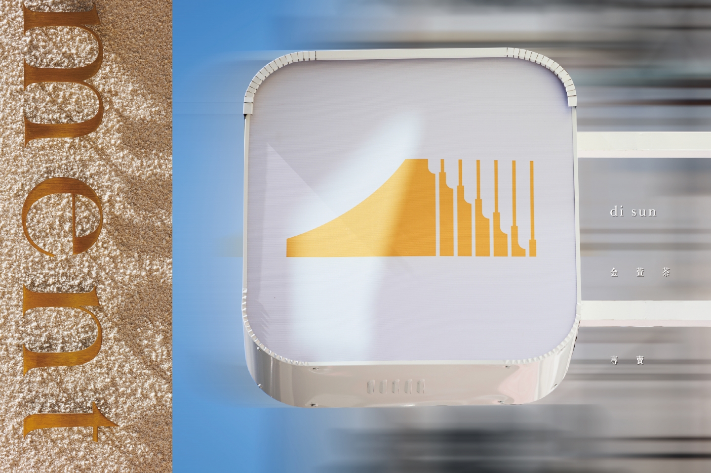 標準字揉合茶湯的漣漪感,使視覺呈現自然的律動;整體視覺以金萱茶湯的「緗色」為主色,透亮而溫潤,呼應品牌的乾淨、純粹、與回甘。