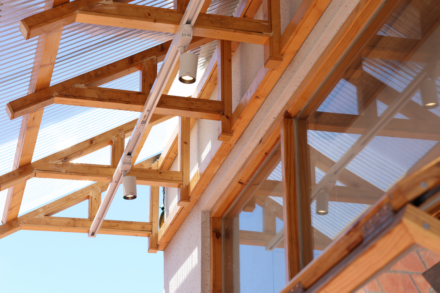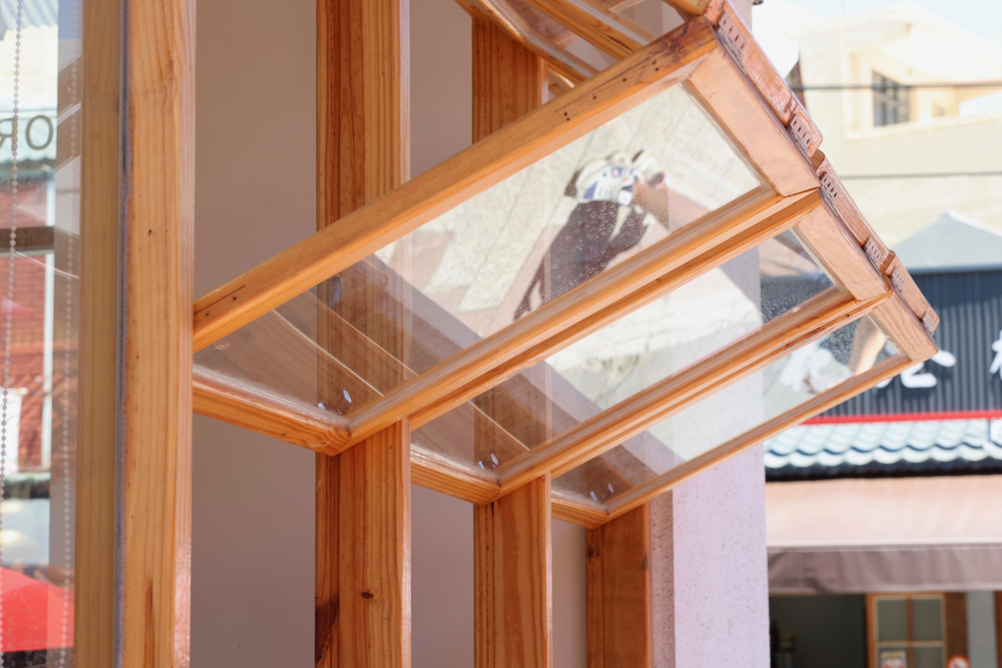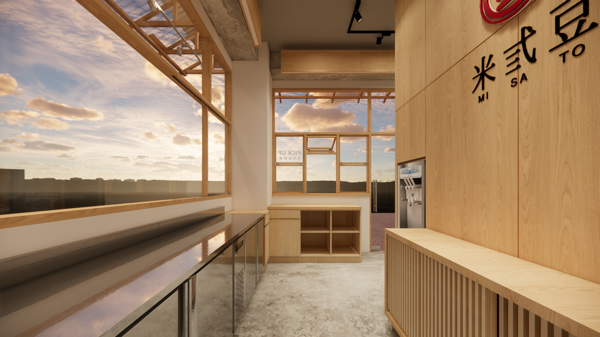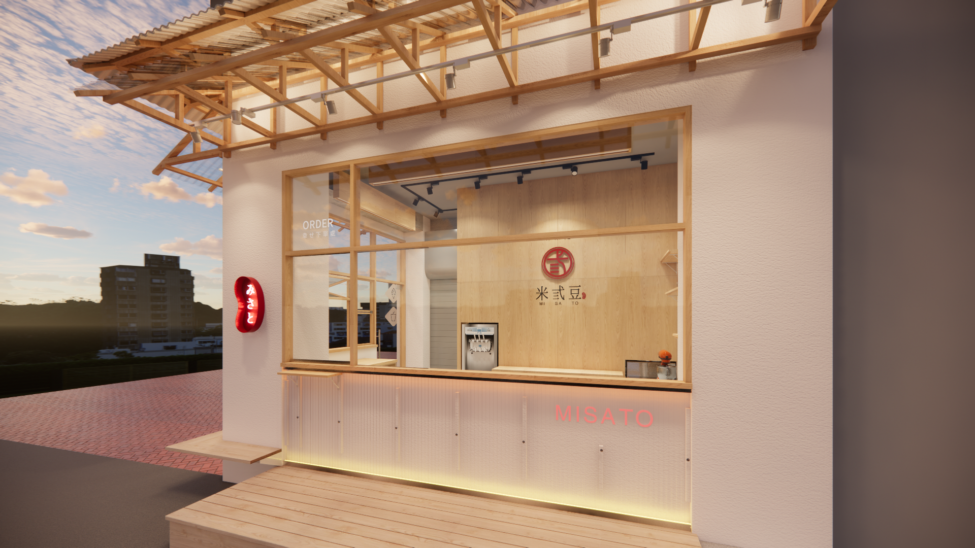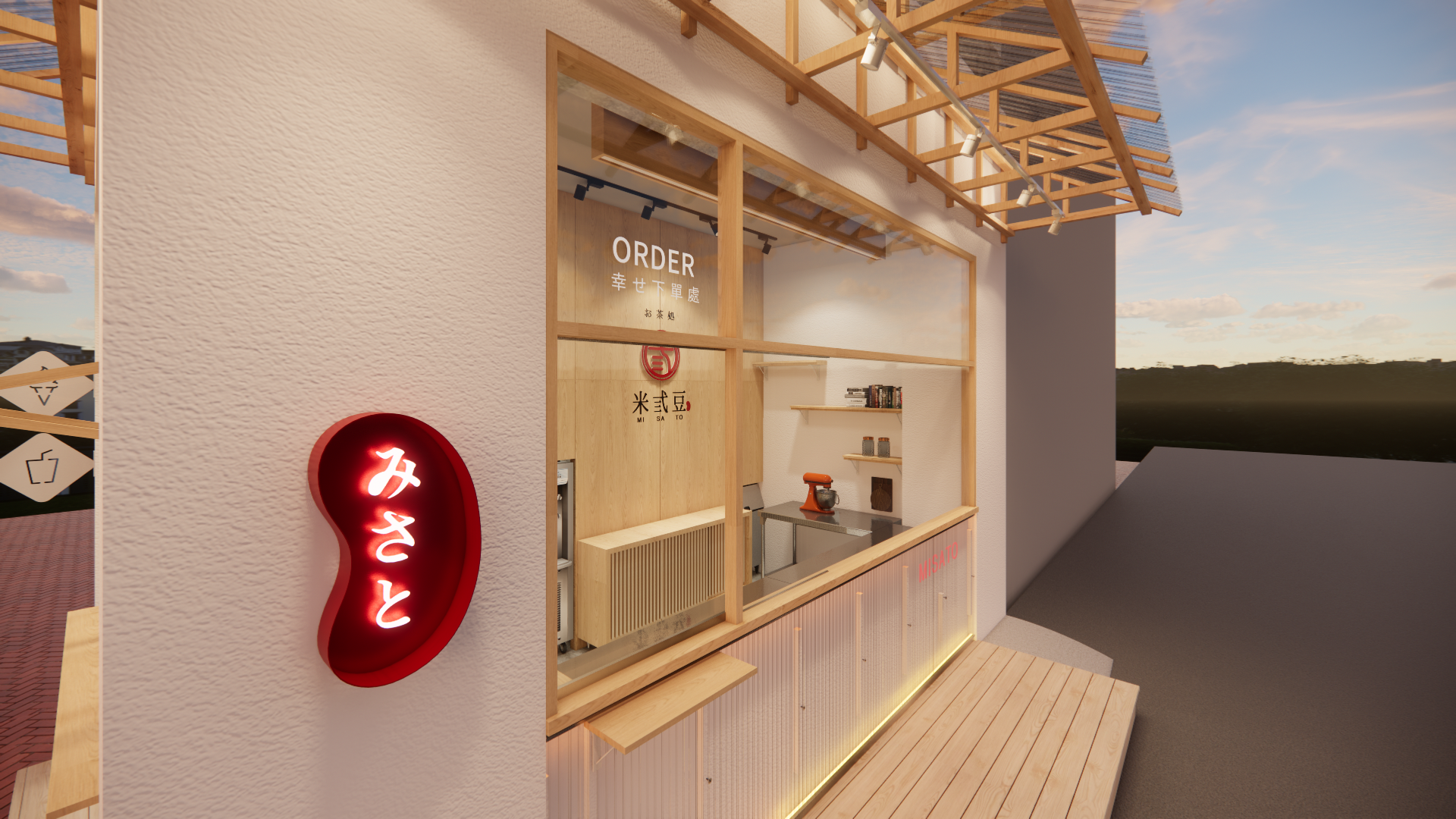 鹿港2号店, 不僅運用了突出的日式屋簷風格,取餐窗口的位置,則選用上懸窗設計,有別於常見的雙向橫拉窗戶,上懸窗不只美觀,還能防止雨水滴入店內,避免餐點淋濕。